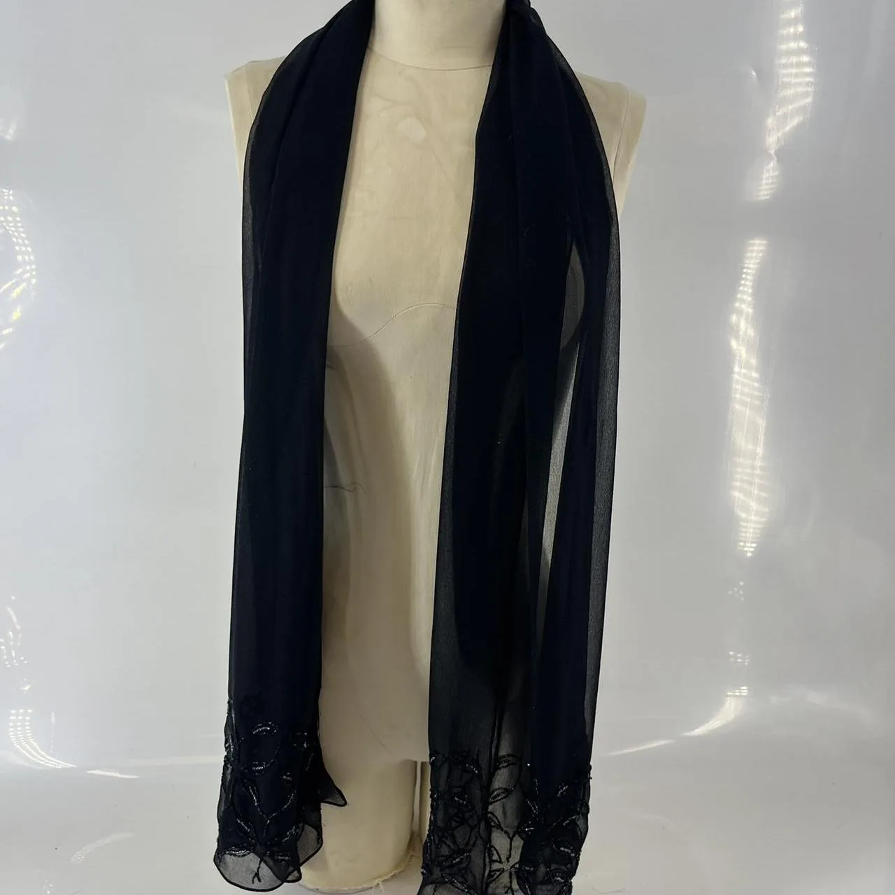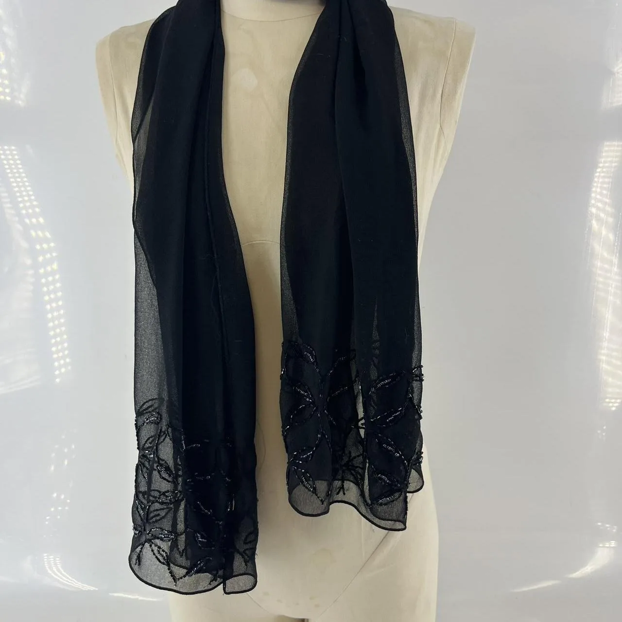 Black sheer scarf with beaded floral design #fairycore #goth #boho #beaded #y2k