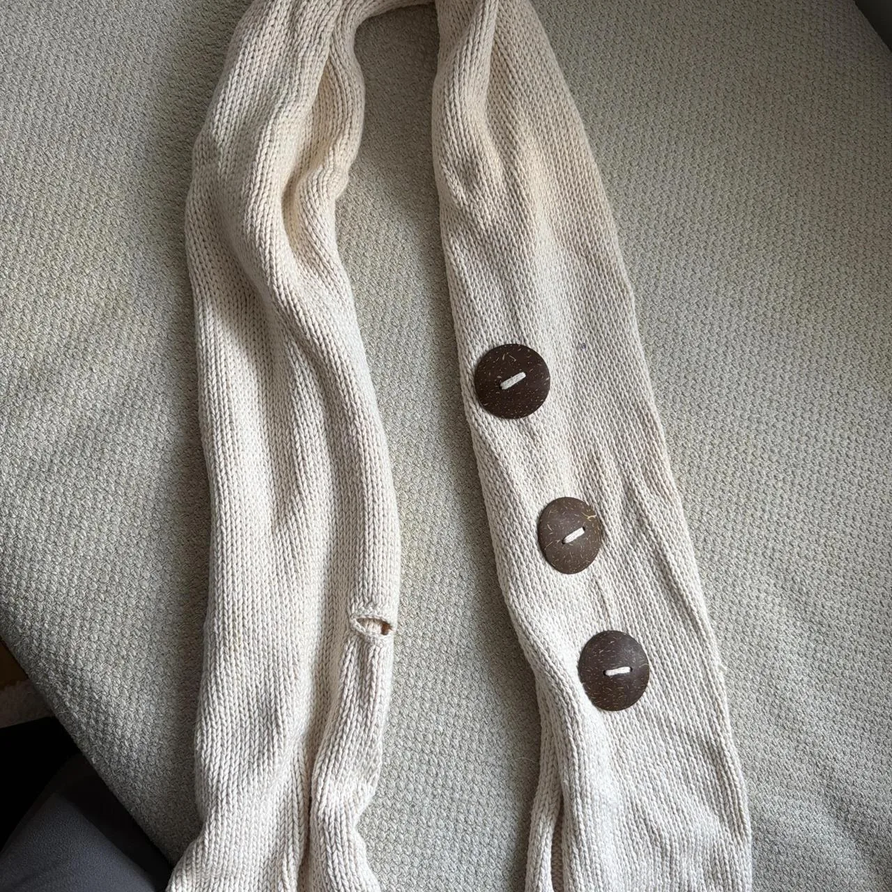 White and brown button up scarf #winteraccessories