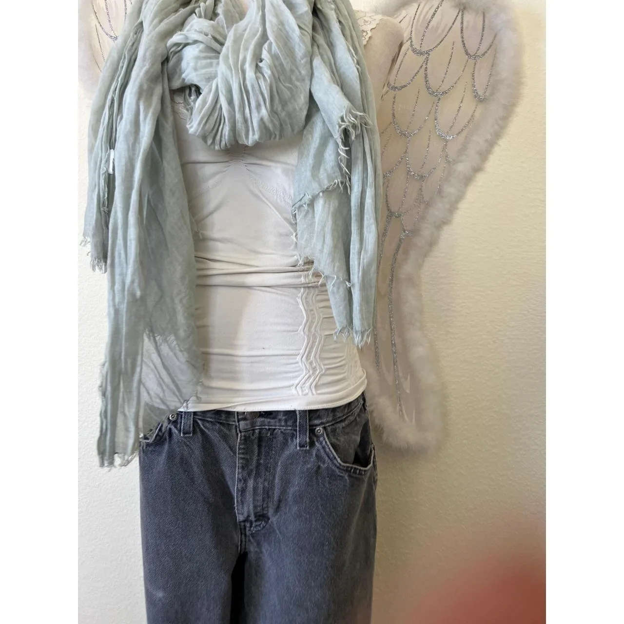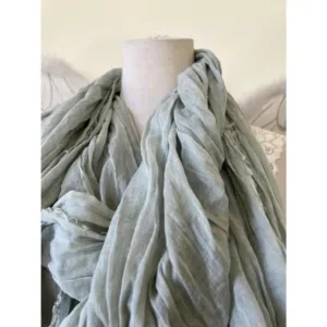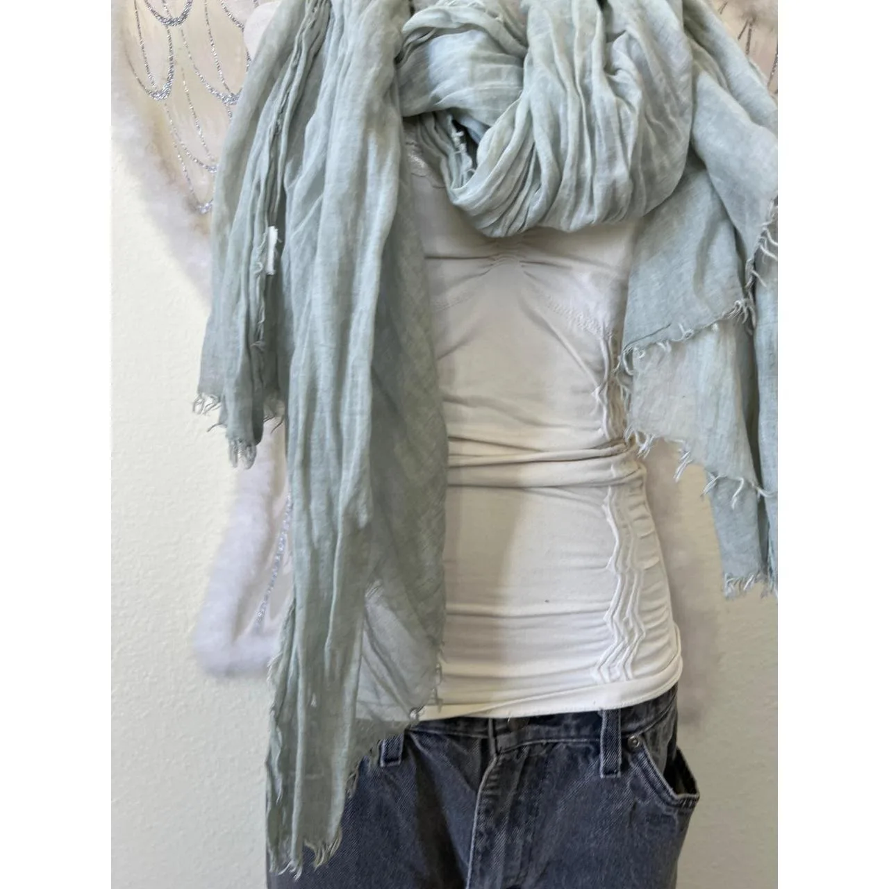 Gauzy Crinkle Textured Knit Fringe Scarf Sage Green Boho Winter Warm Kawaii Cute