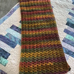 With warm, jewel-toned autumn colors, this scarf will add a fun vibrancy to any outfit.