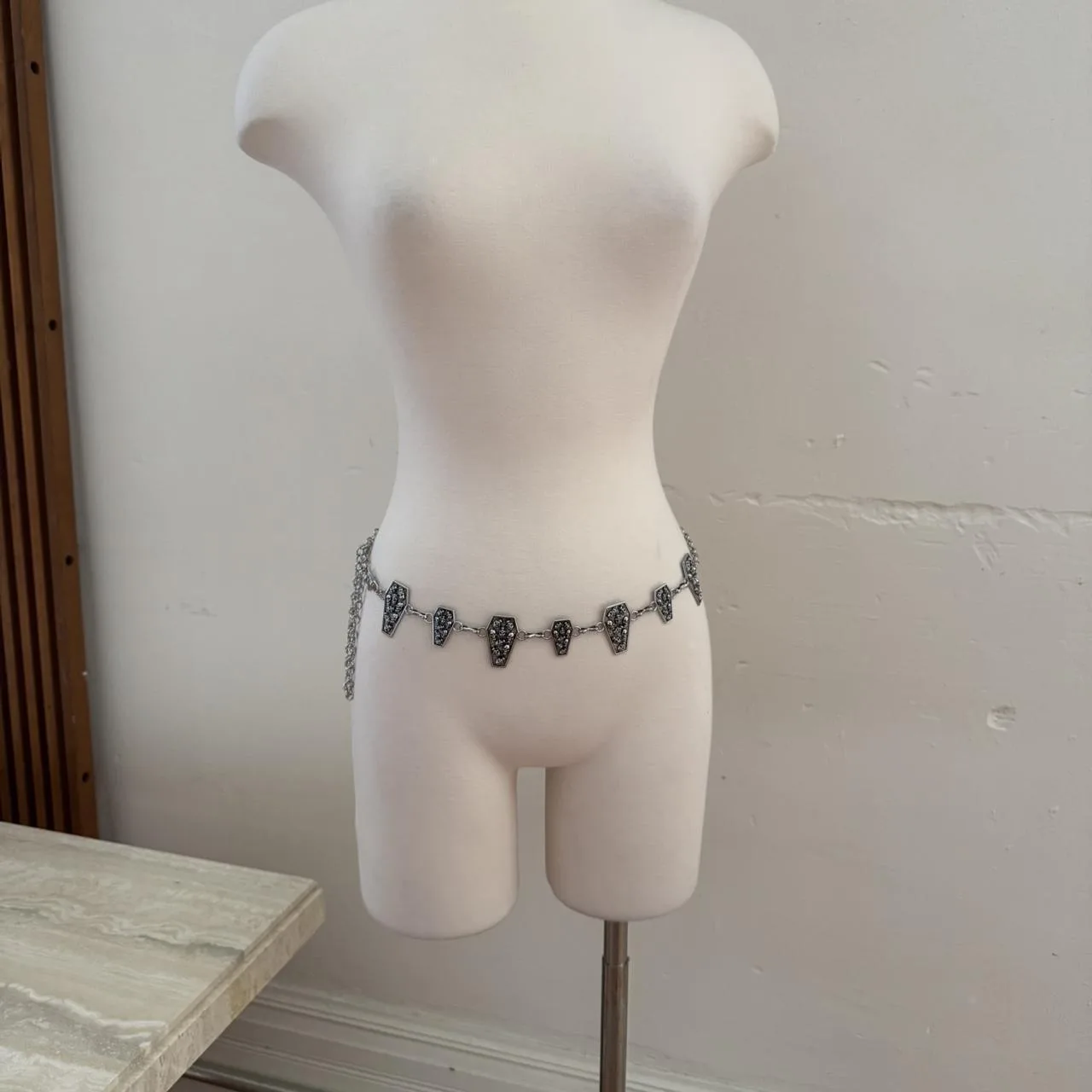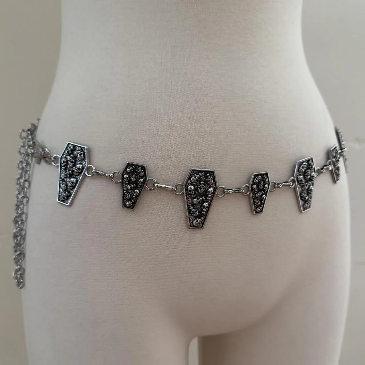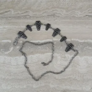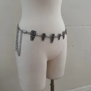 Silver and black coffin skull chain belt