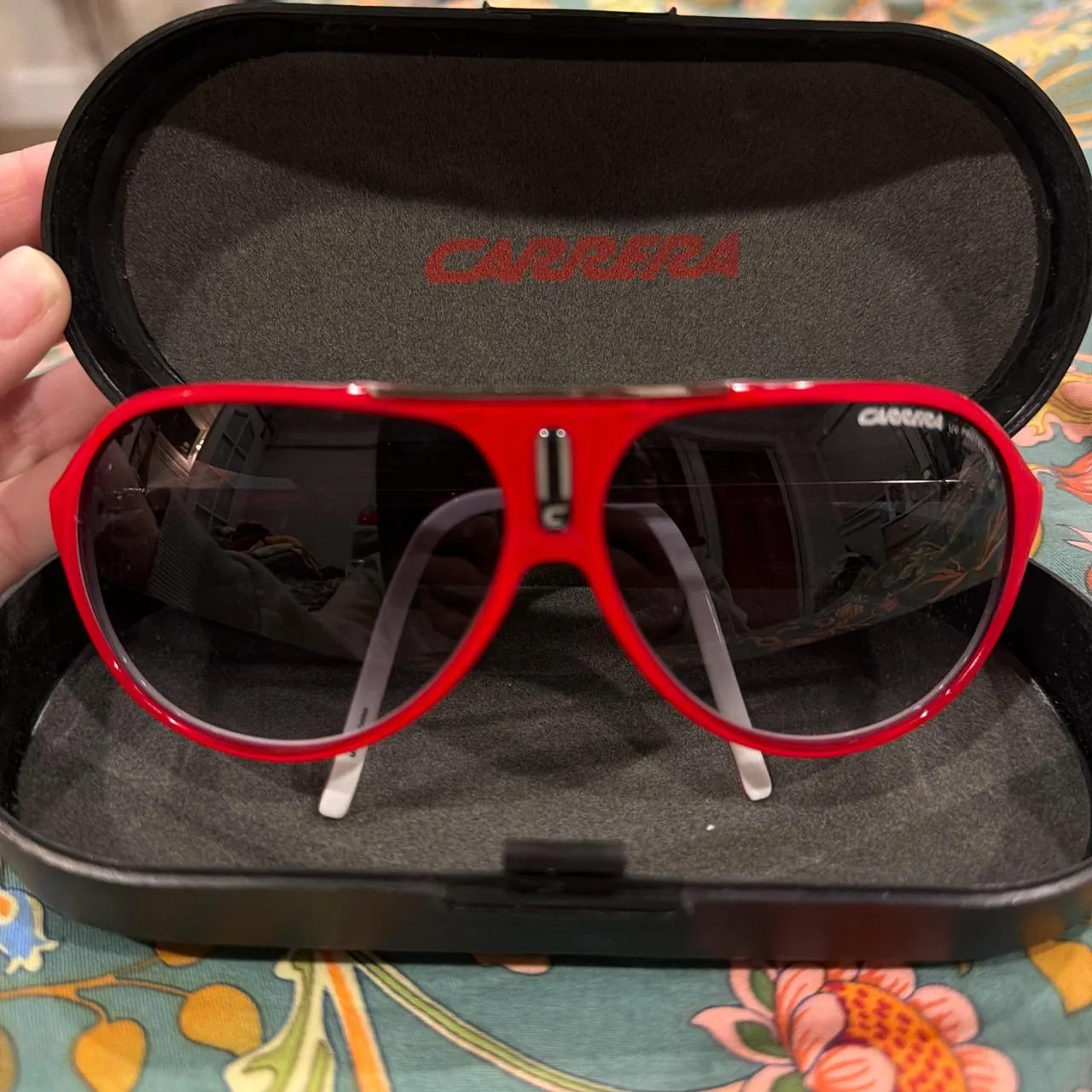 Carrera sunglasses , red and white outline with black lens #racing #sunglasses #red #womens #carrera