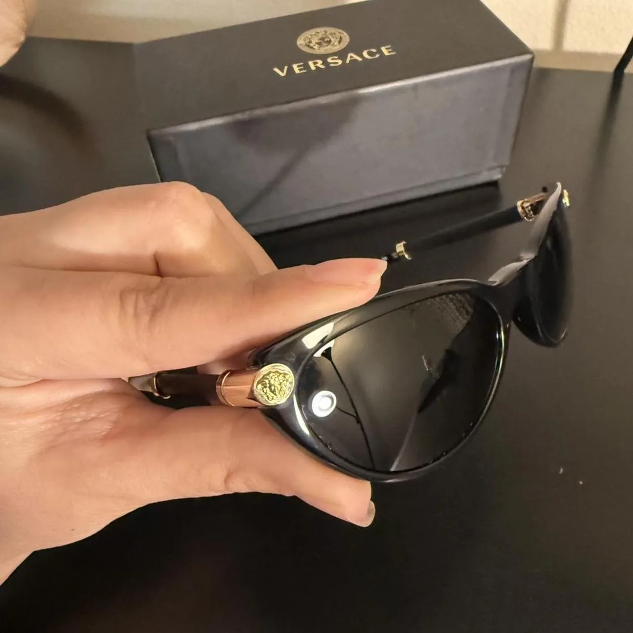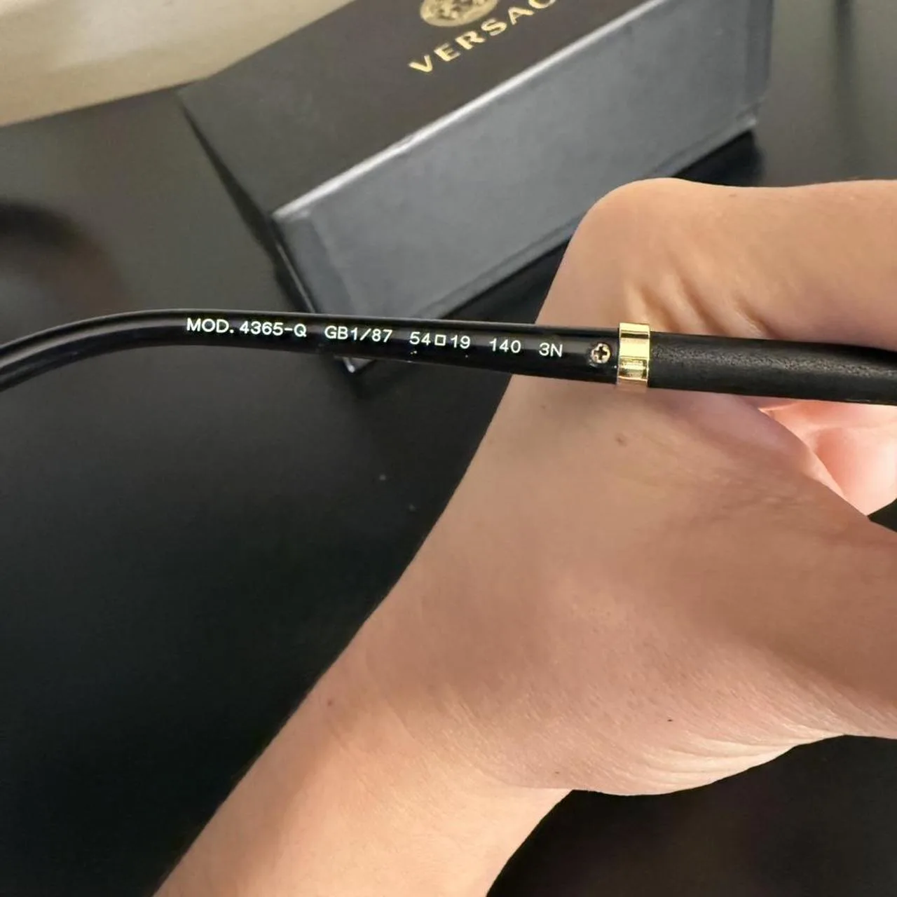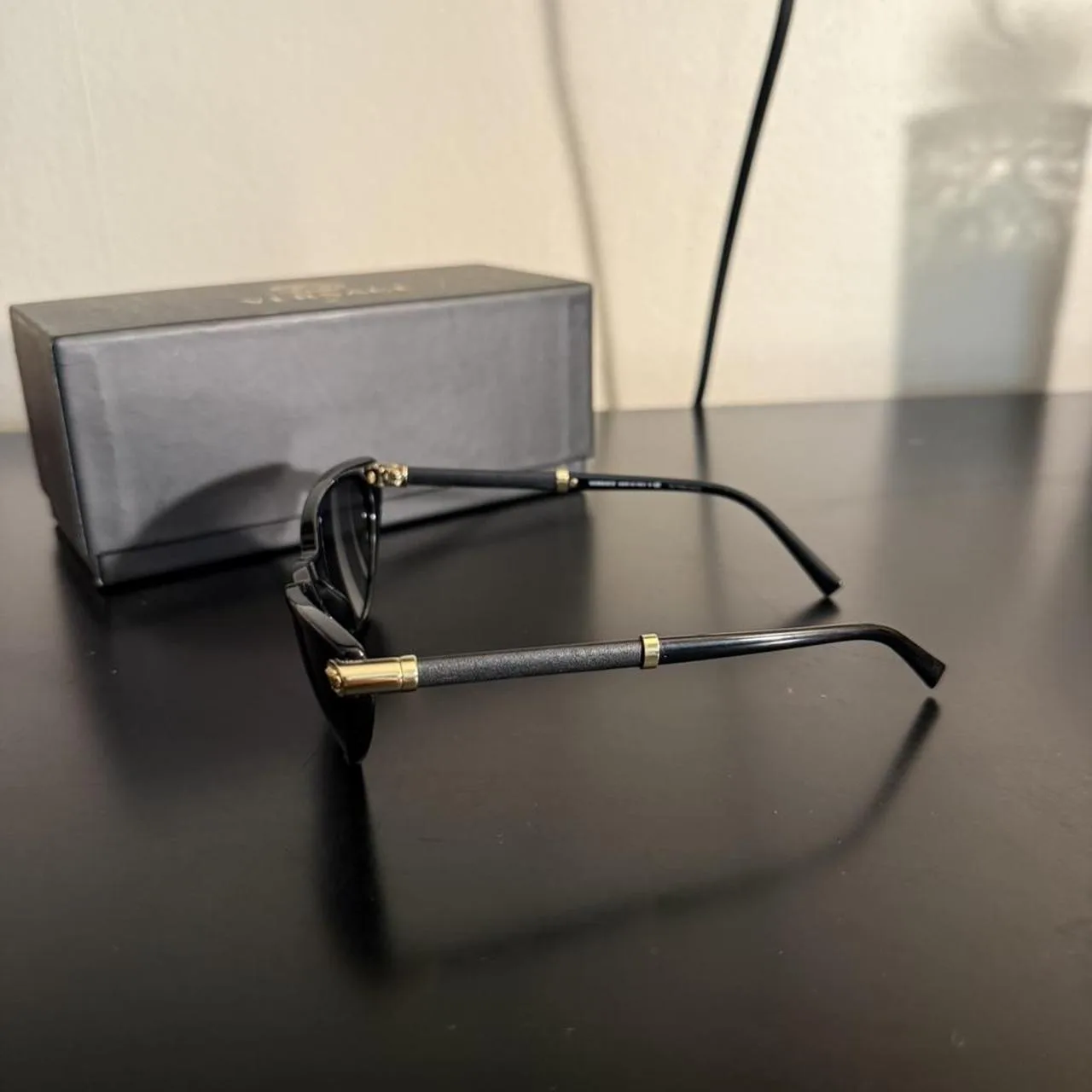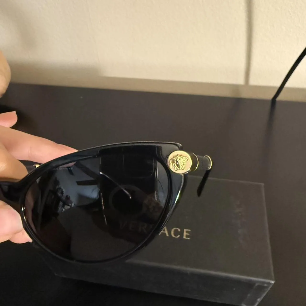 Versace black sunglasses with gold detailing. Tight fit so probably best for kids. This fit me great because I have a small face.