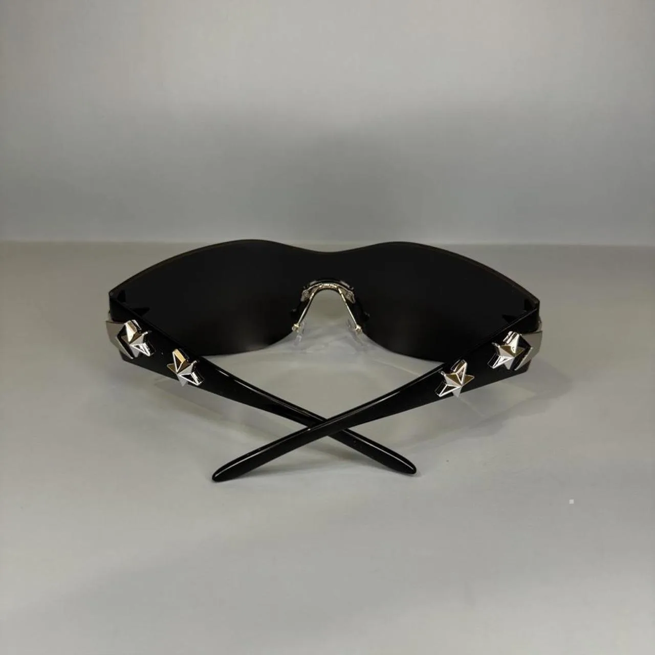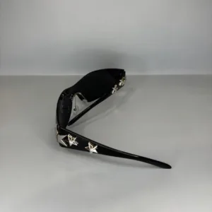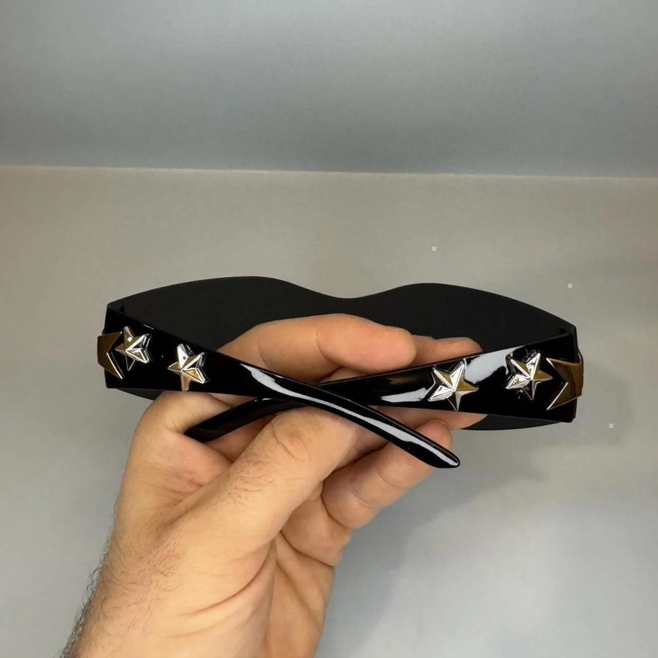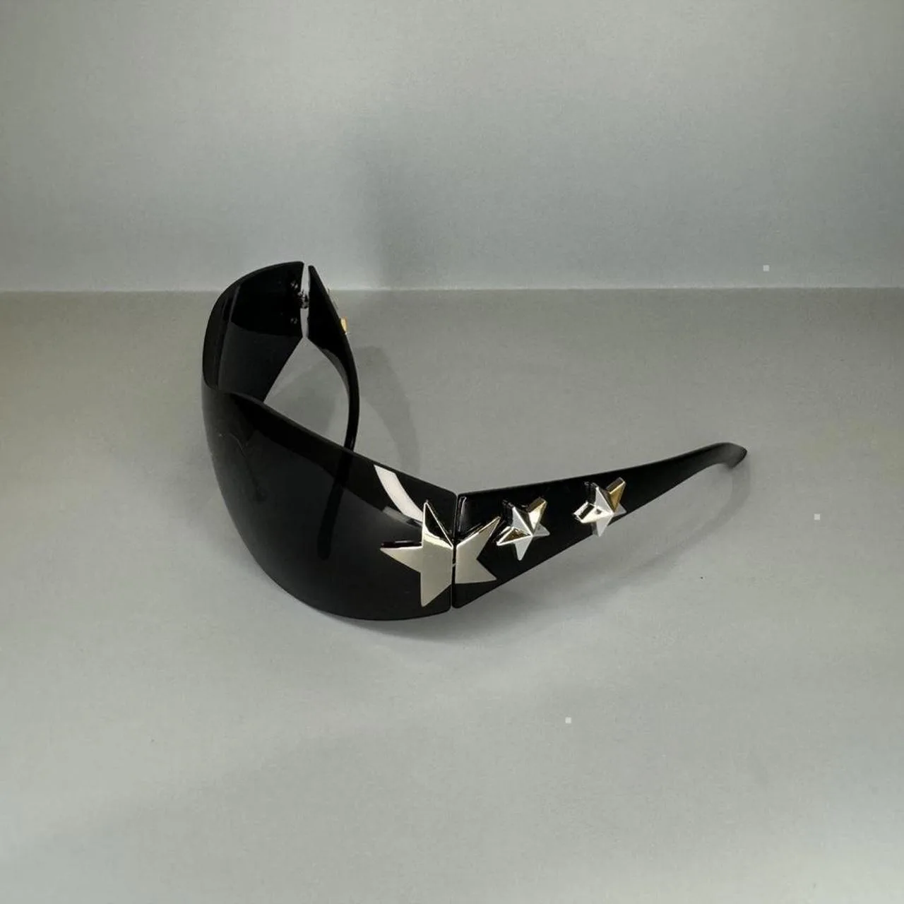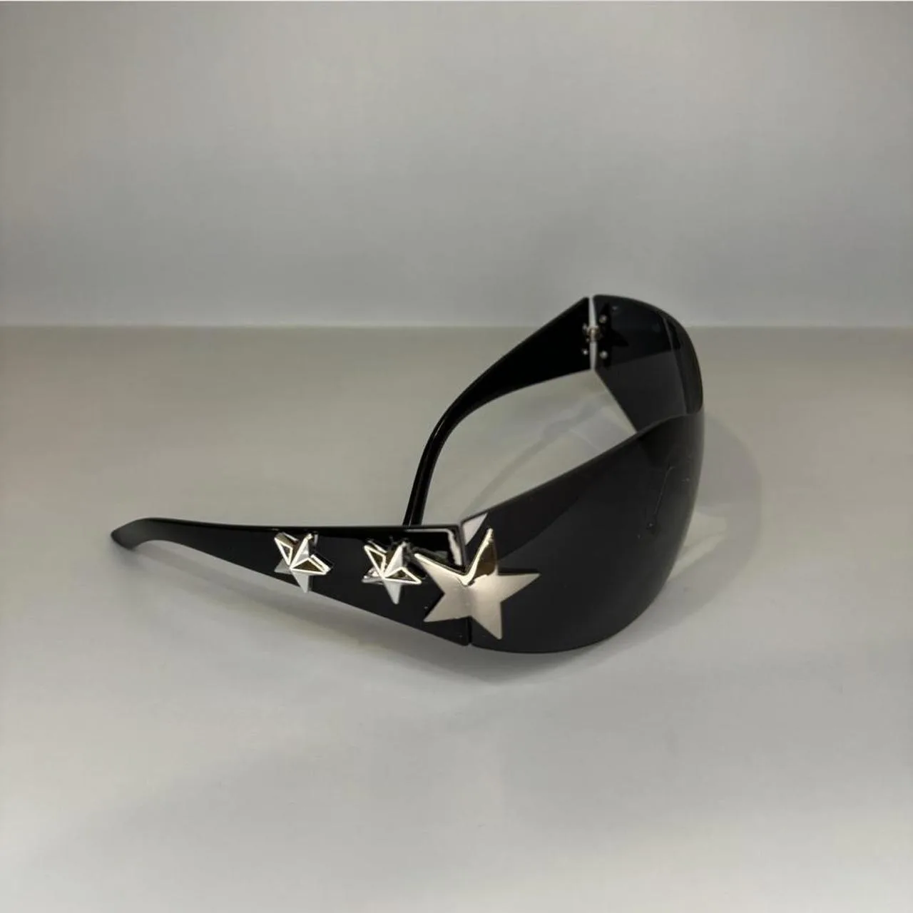 Vintage 2k style style black sunglasses with silver stars. UVA UVB protection.