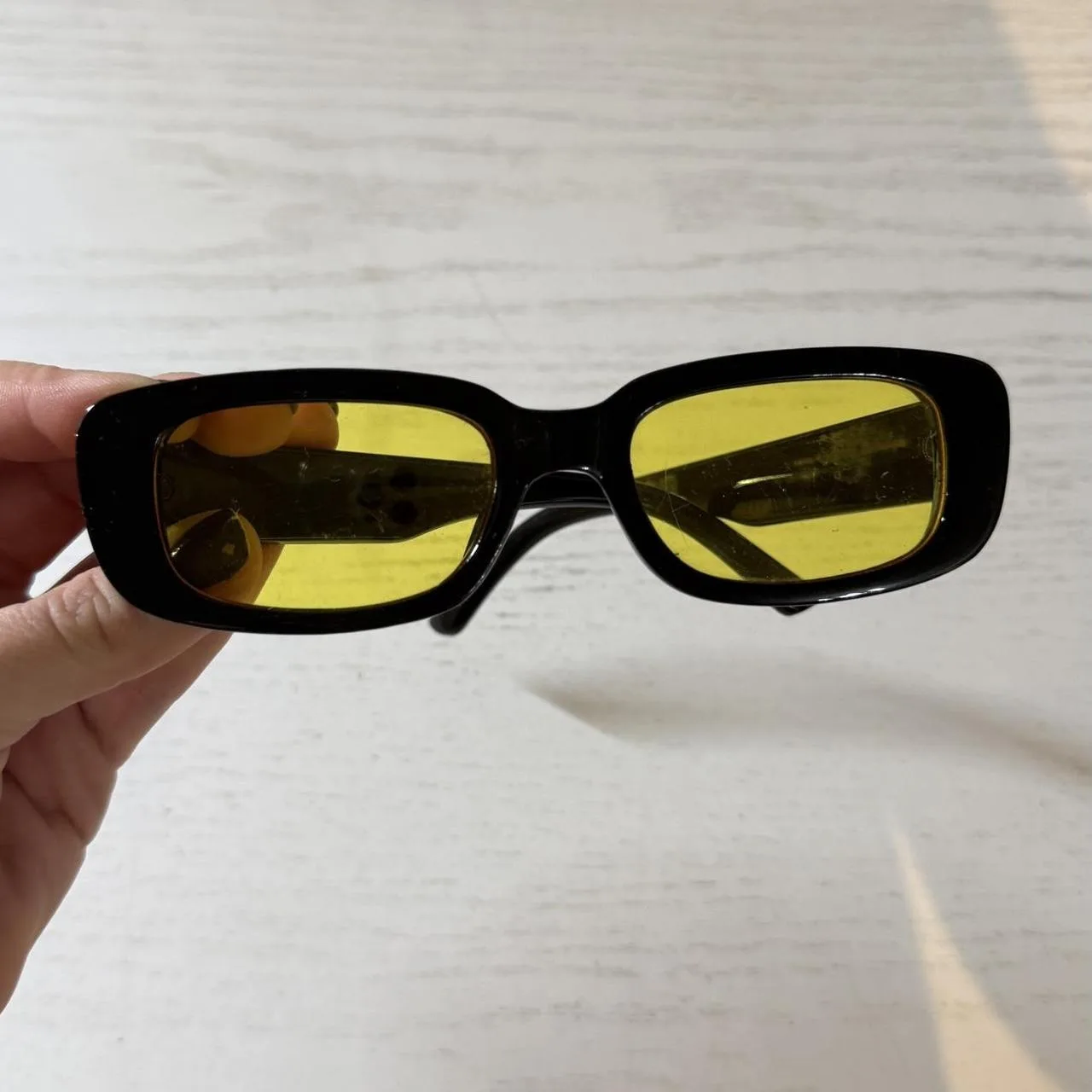 Black and yellow-orange sunglasses #sunglasses #yellow #goggles #shades