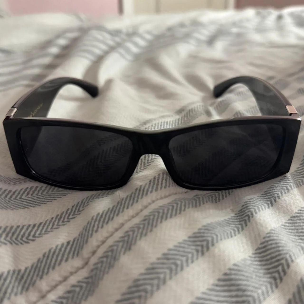 black sunglasses with silver detailing