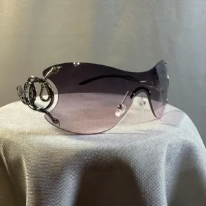 🧿 Details: Oversized curved lens, decorative metal side accents, Y2K glam aesthetic