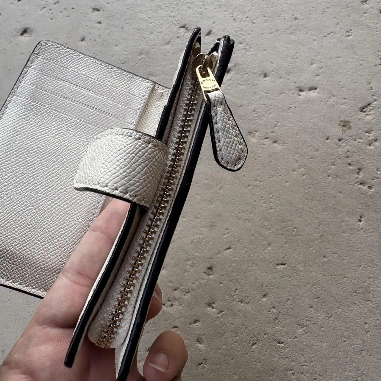 Coach Medium Corner Zip Wallet in crossgrain leather. Super clean ready to be styled!
