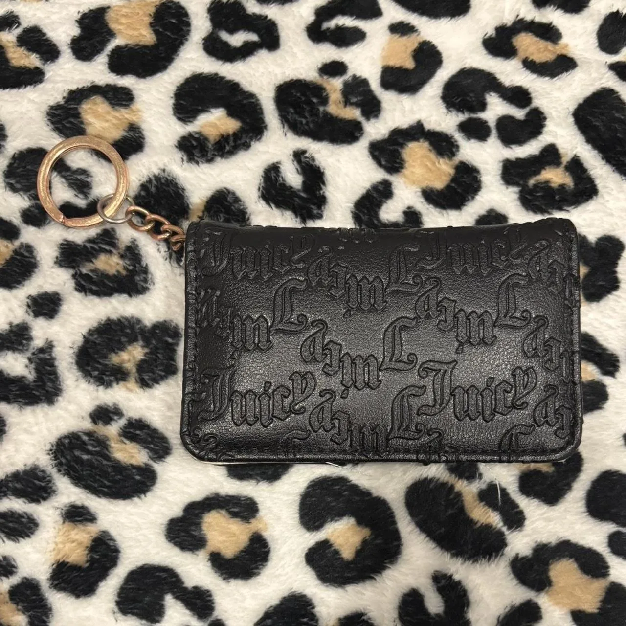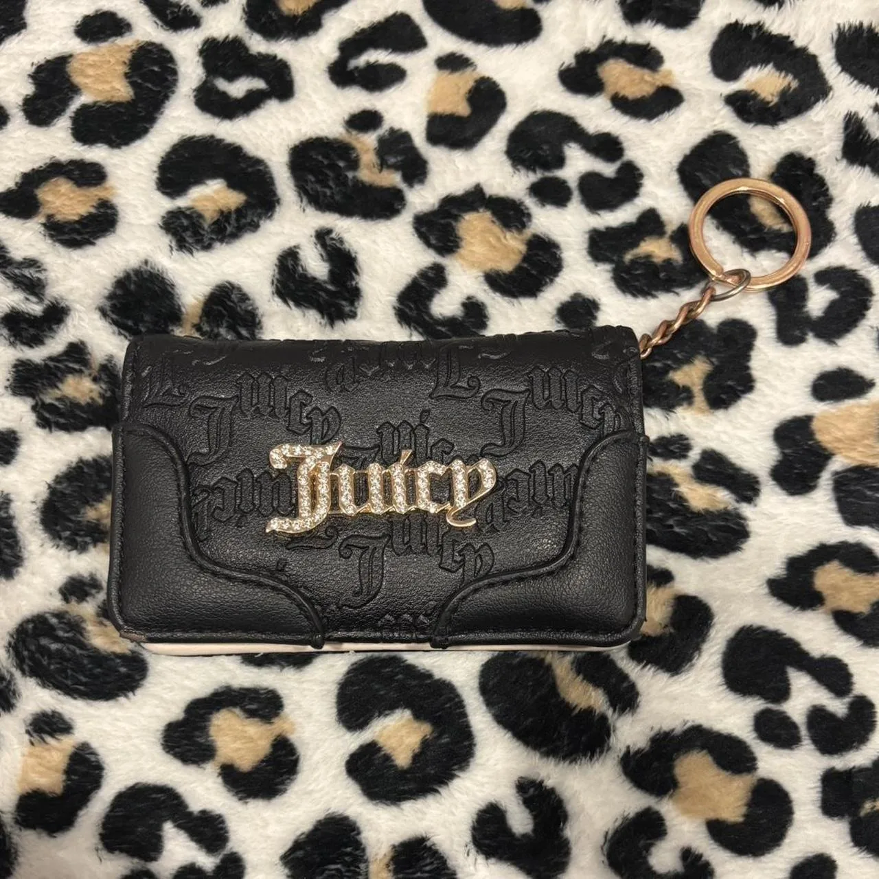 Juicy Couture black and gold wallet with keyring. Cute juicy monogram design inside. Many pockets!