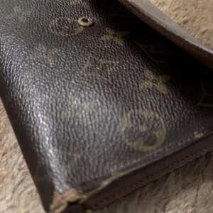 Pre-owned Louis Vuitton wallet with visible signs of wear consistent with use. The wallet shows noticeable wear and cosmetic imperfections. Please note that the main exterior snap button does not align properly and does not close securely. Despite this issue, the wallet remains functional for basic use. Ideal for someone looking for a genuine designer wallet at a lower price, or for repair/ restoration