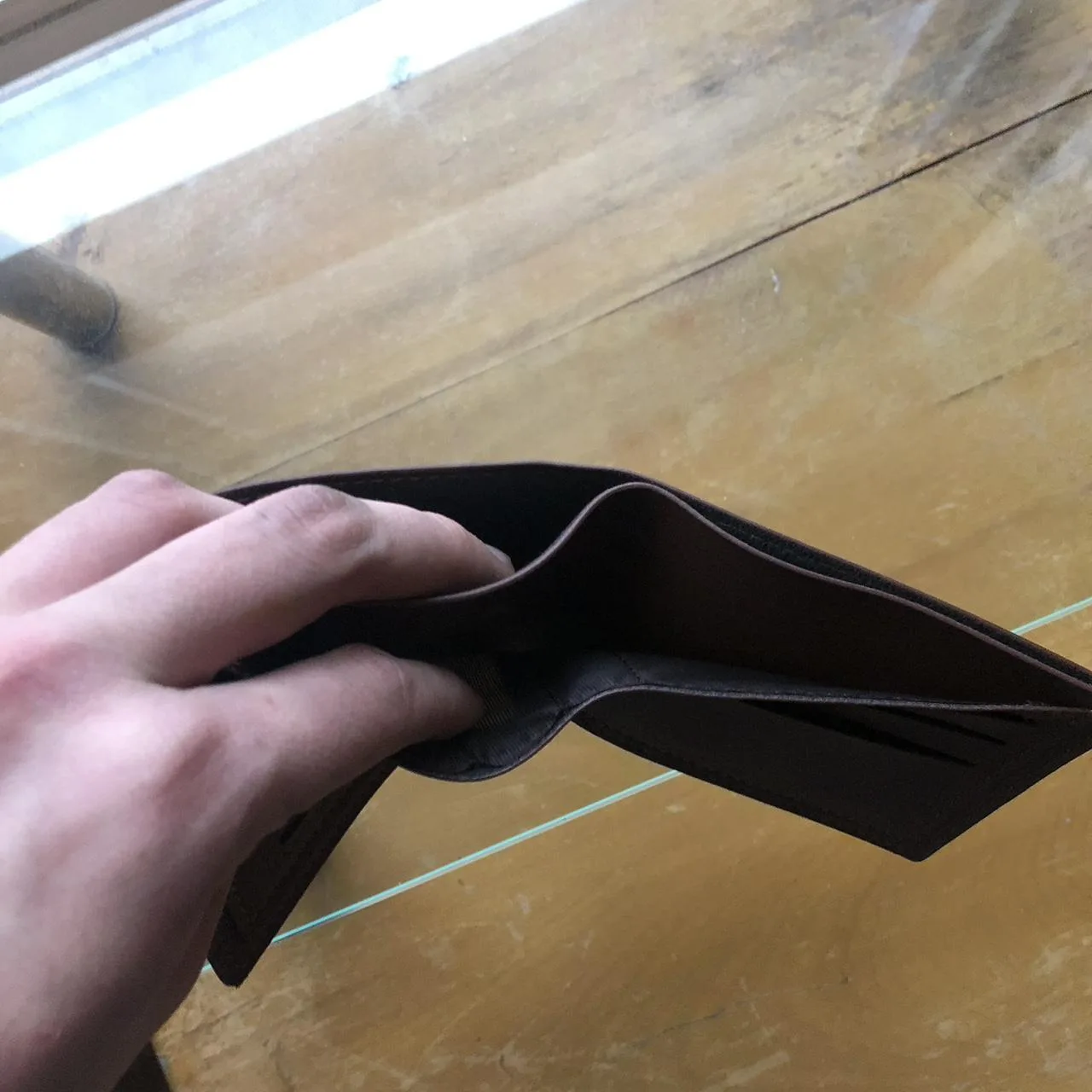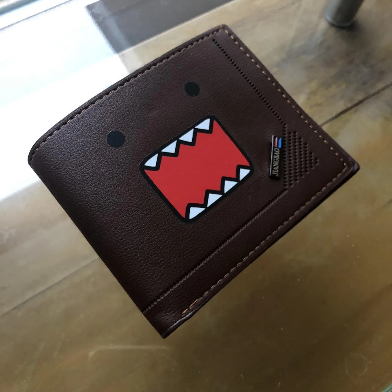 Domo Wallet brown Leather red black Y2k Cross silver black stitch Wallet bi fold multi pocket Silver