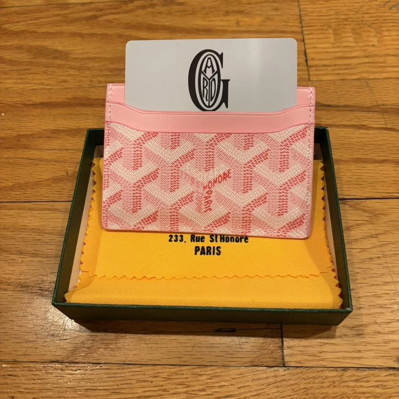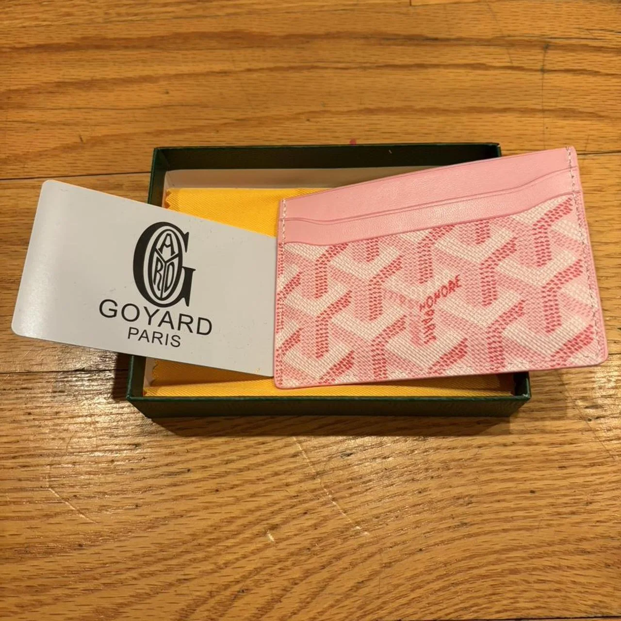 pink men and women goyard cardholder fast shipping, slim, luxury accessories, card case, leather, geometric