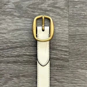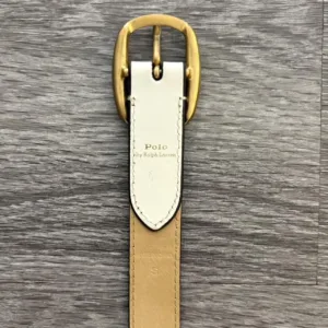Women’s Polo Belt. Cream leather, slight mark at the top. Brass buckle.