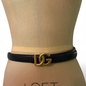 Vintage Black leather belt with gold buckle #leatherbelt d and g