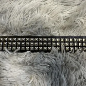 ?? Details: Faux-leather material, triple-row pyramid studs, tribal-style silver-tone buckle, studded belt tip, bold Y2K punk aesthetic