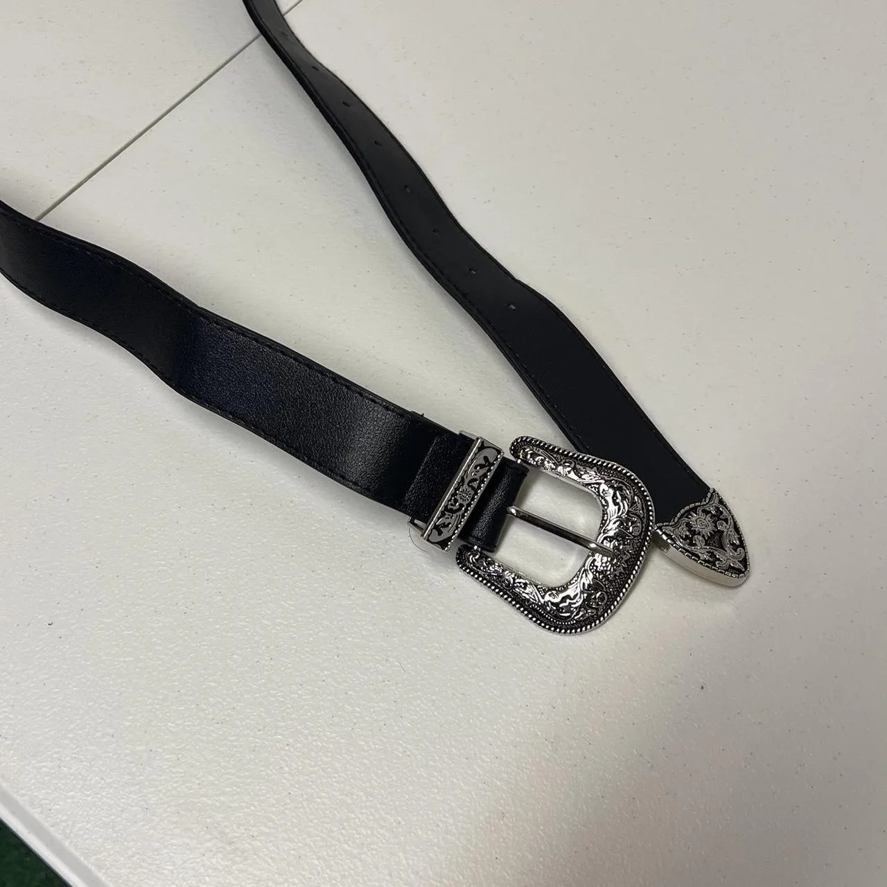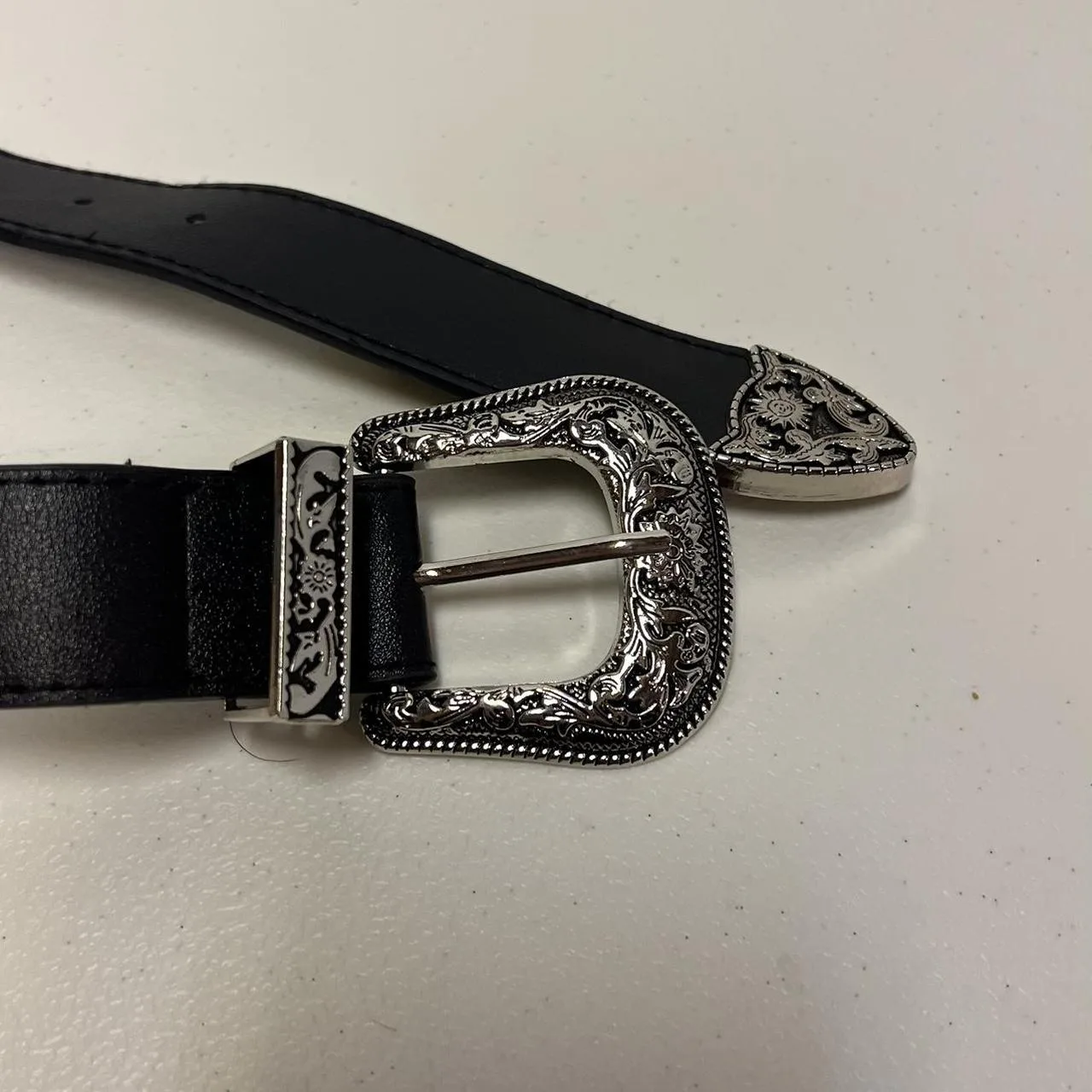 Women’s cowgirl style Black leather belt with silver buckle #leather #buckle super cute western women’s belt! Fits from 25-37!