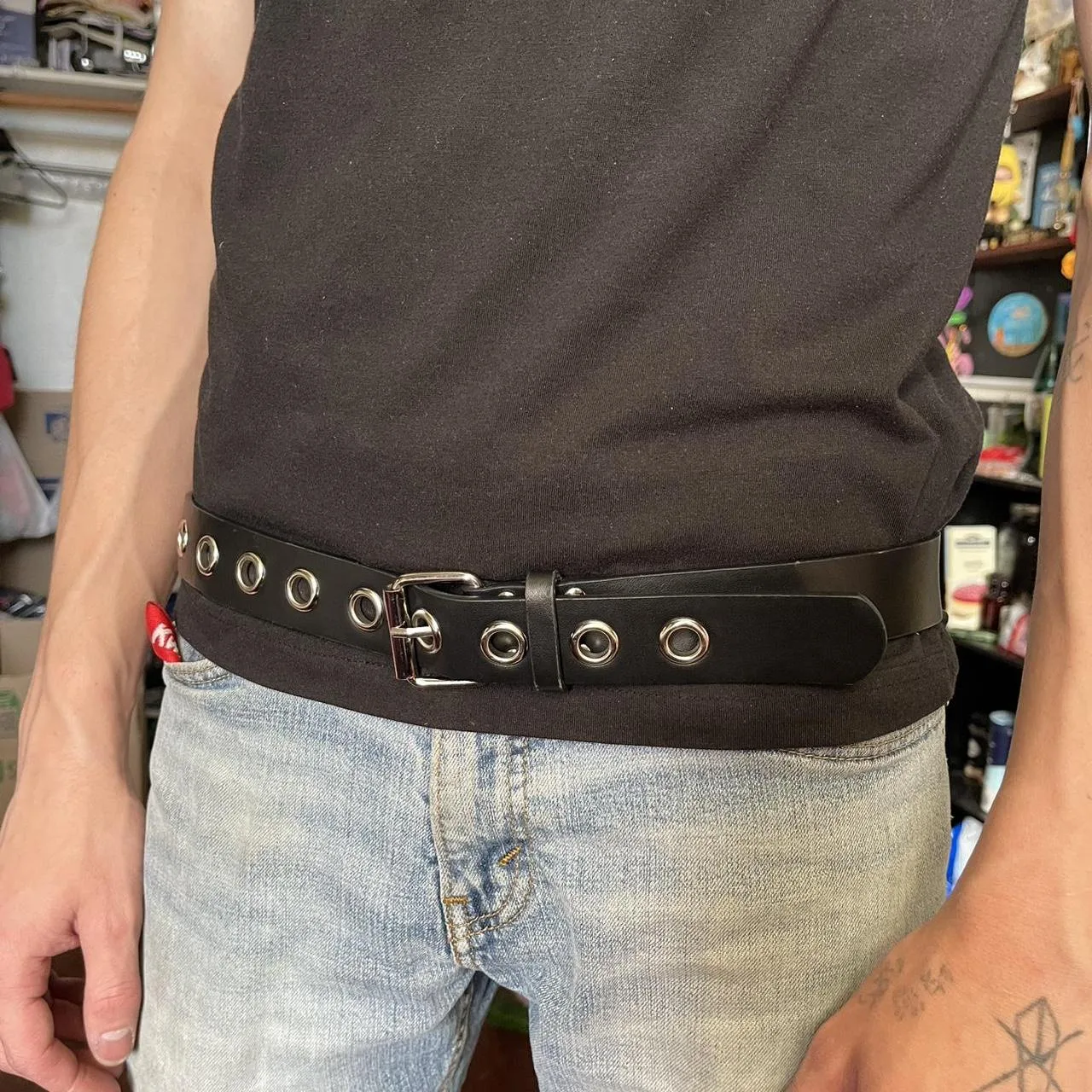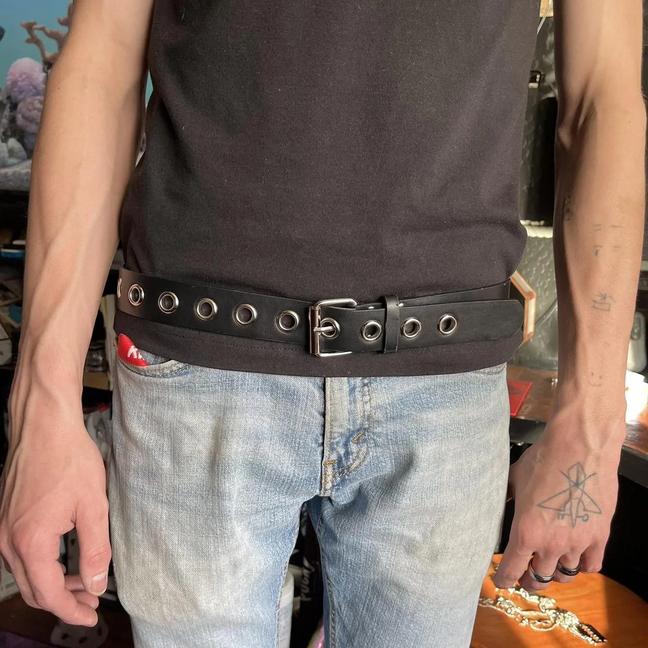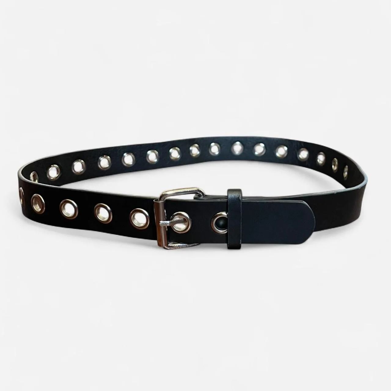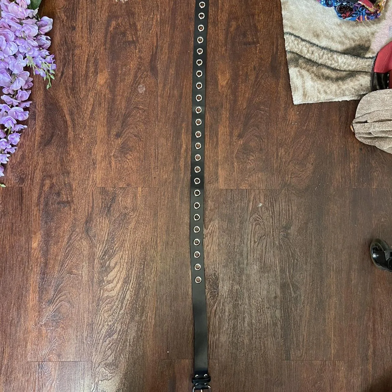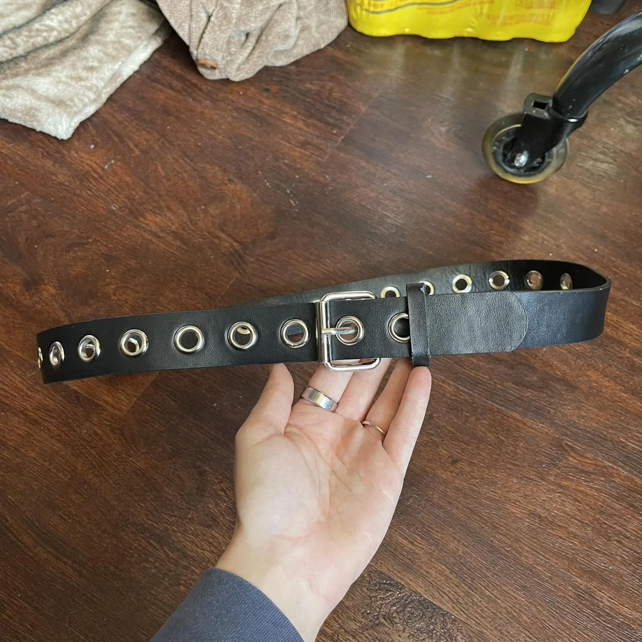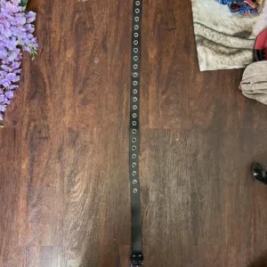 black leather belt with silver eyelets, was worn a few times but is in great condition.