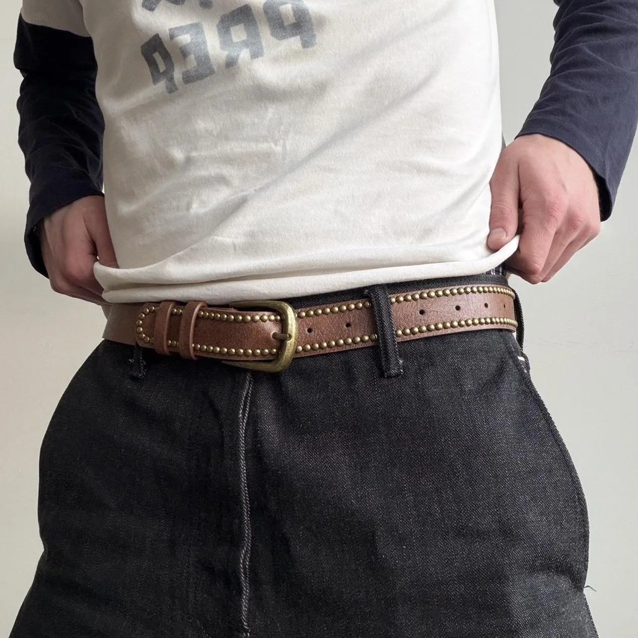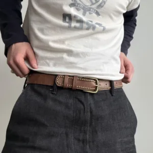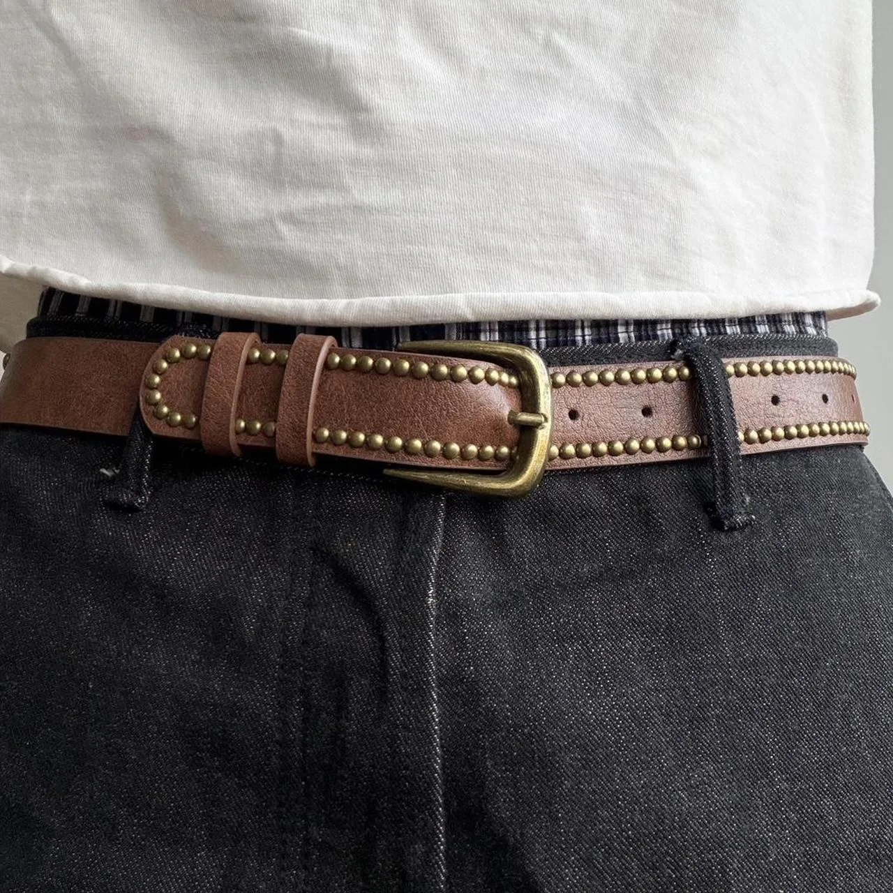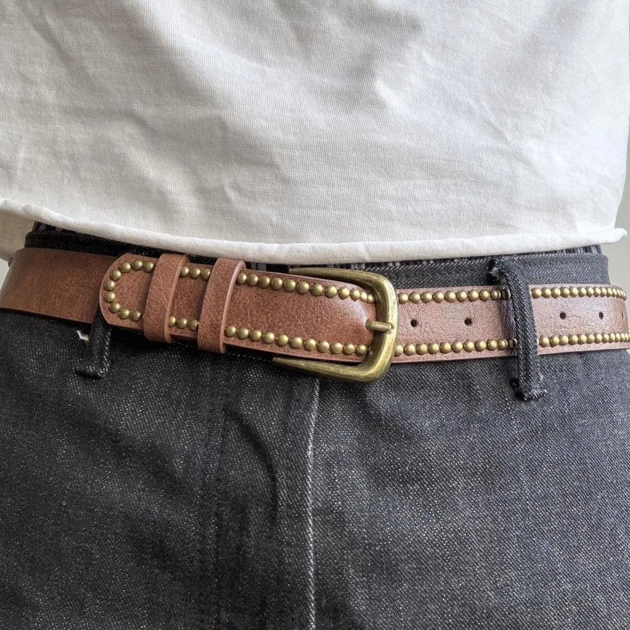 Brown and gold studded belt