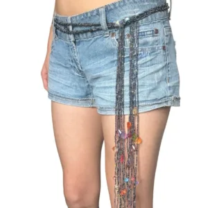 Women’s Vintage Y2K Black Colorful Beaded Belt