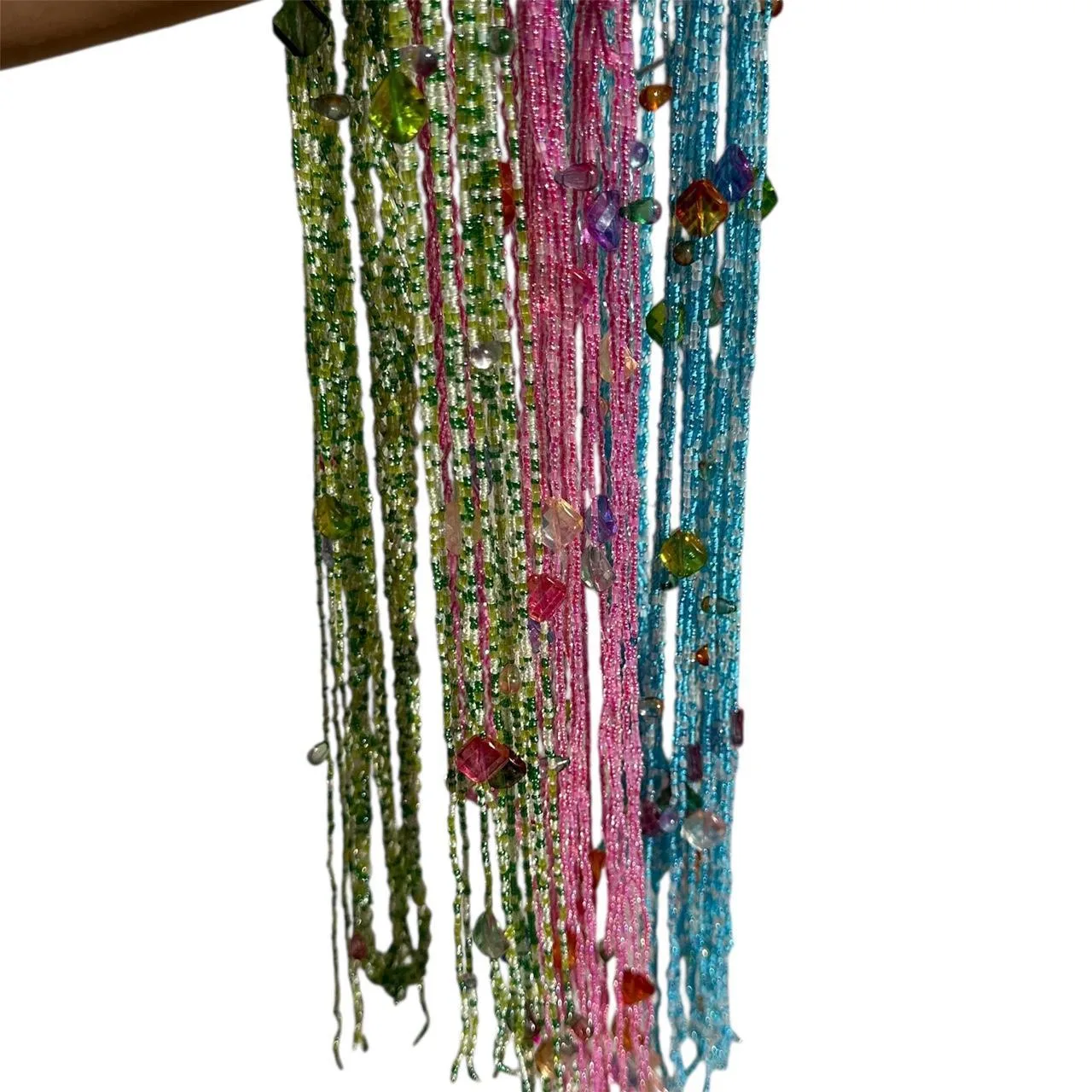 – Beautiful unique piece. Can also be a waist chain. The beads look like gems, perfect for summer. New without tags. Also availabile in green,pink, and blue. Pieces vary in terms of beading and shade color. No two belts are the same but they all look extremely similar. Dm questions 🖤