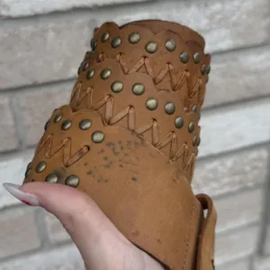 Leather belt with studs size small! has staining as pictured!