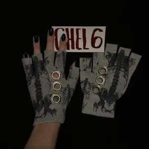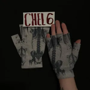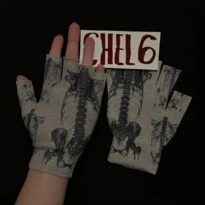 skeletons unique fingerless gloves with silver grommets