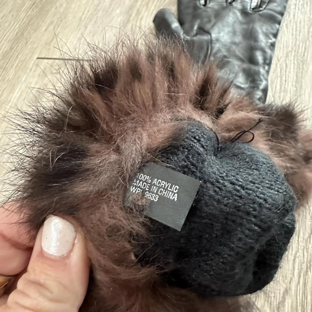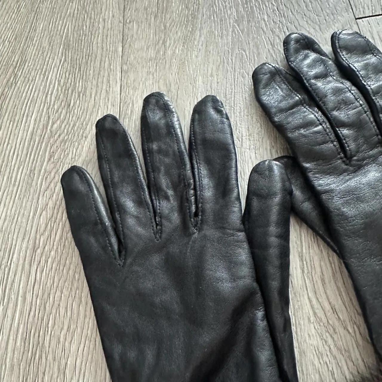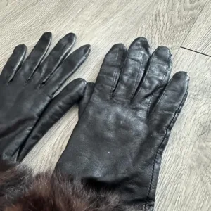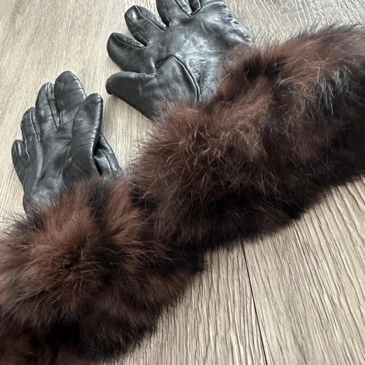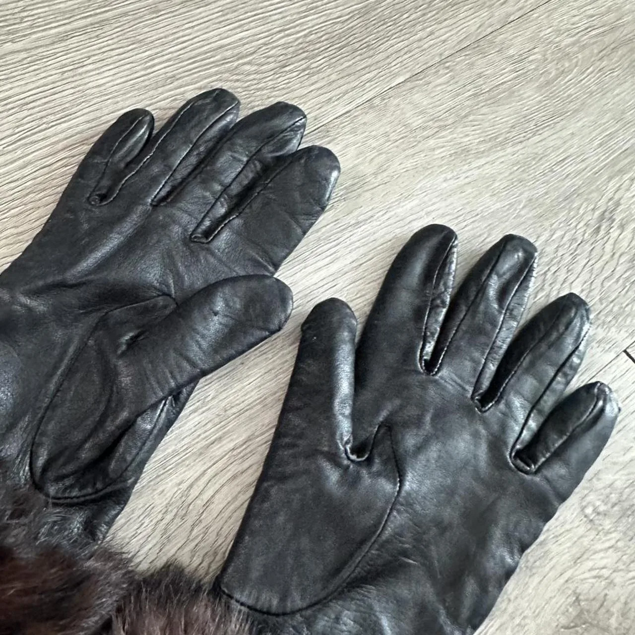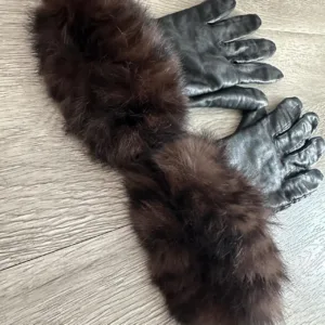 Vintage Black Leather Brown Mink Fur Cuff Evening Gloves 7 in very good condition as pictured