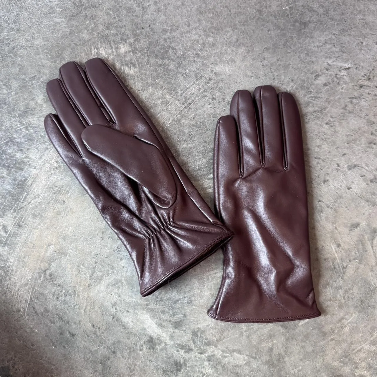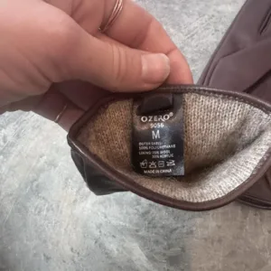 Super cute brown leather gloves!! The leather is super soft and so is the wool lining. Women’s size medium, but fits like a small.