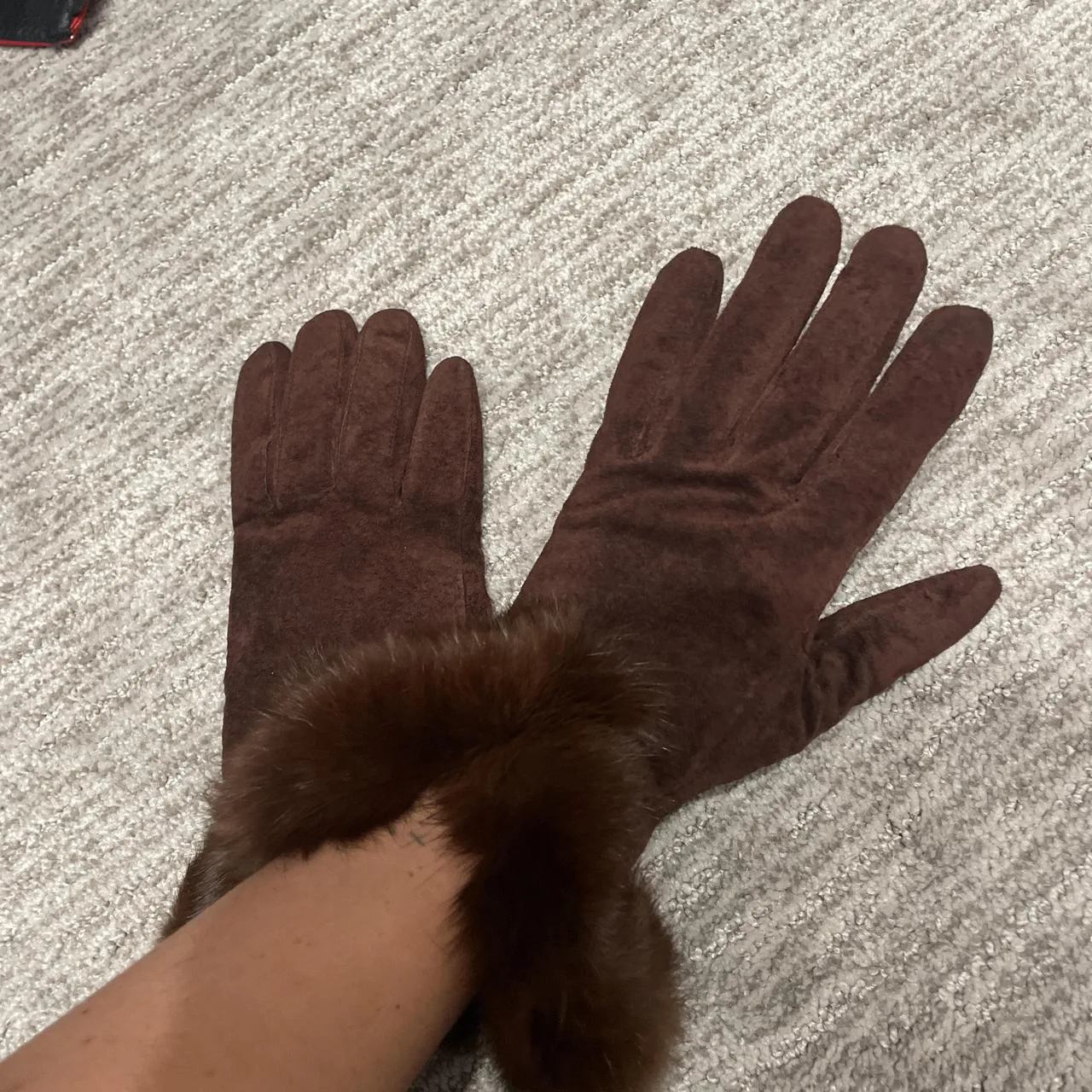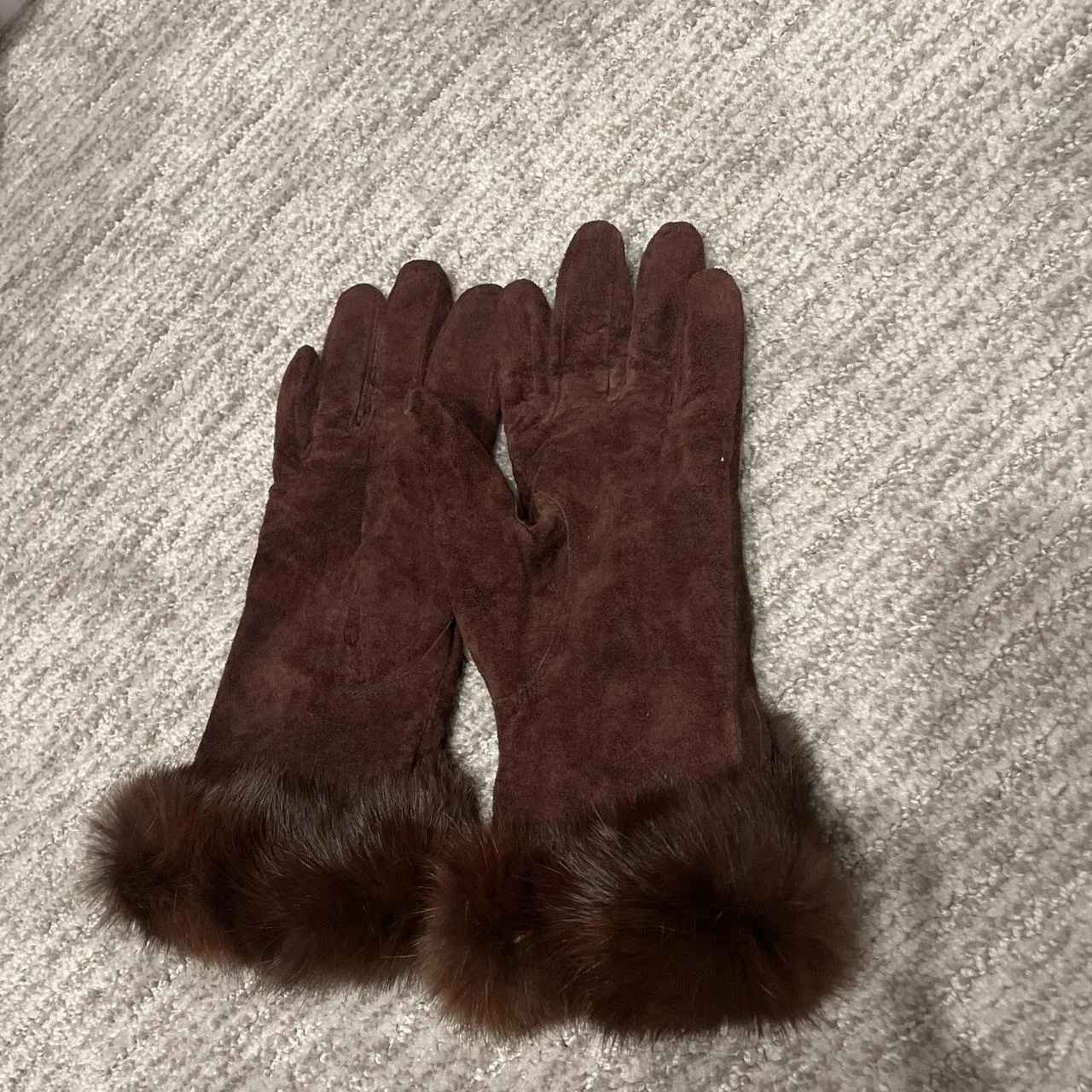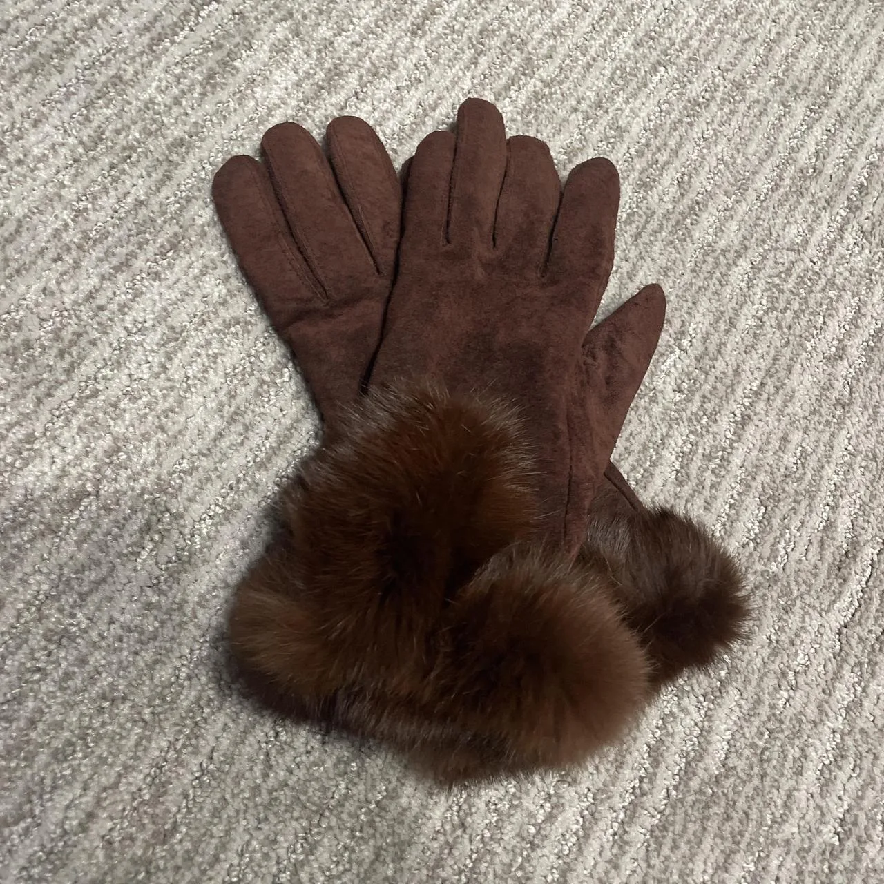 Brown suede gloves with fur trim #winterwear #gloves