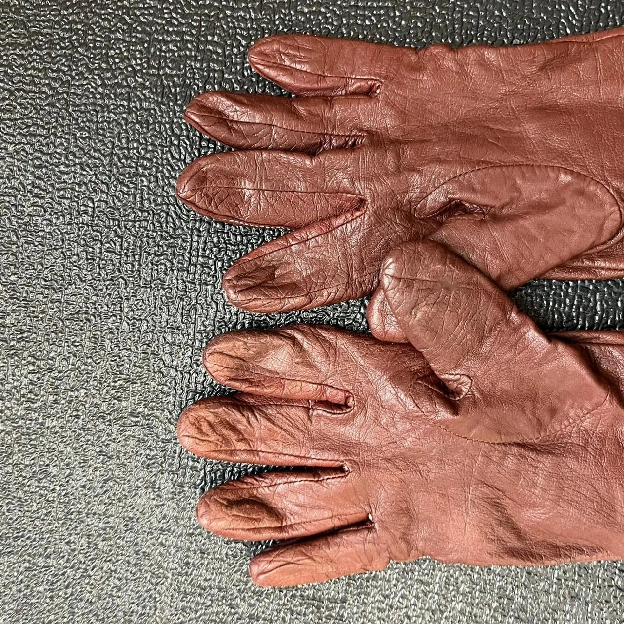 VTG Womens Leather Gloves Brown Buckle Lined Winter Warm Quiet Luxury Academia
