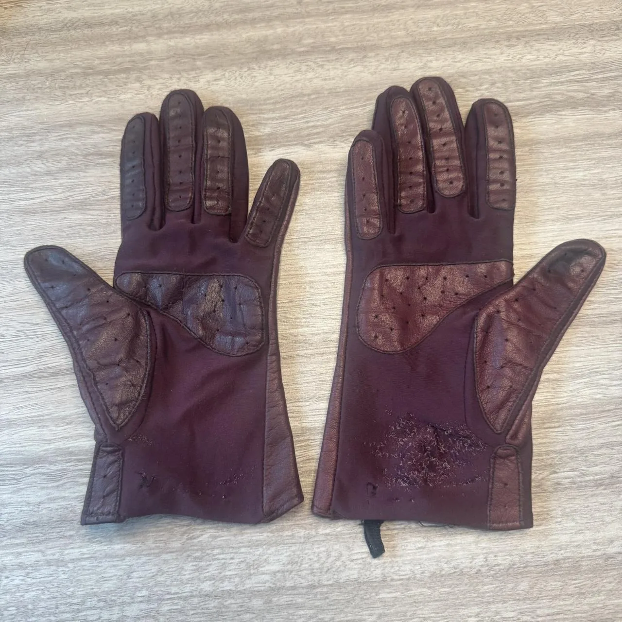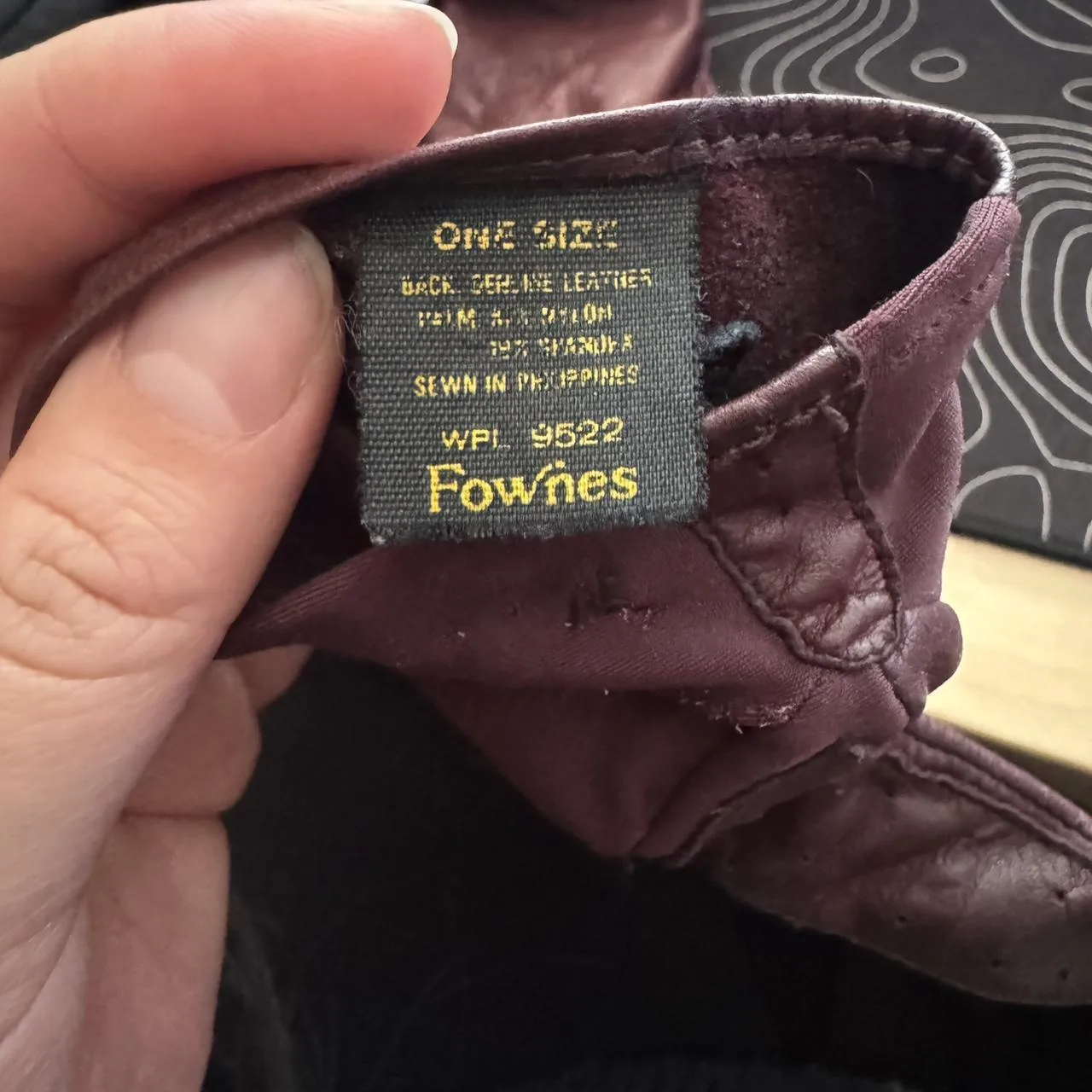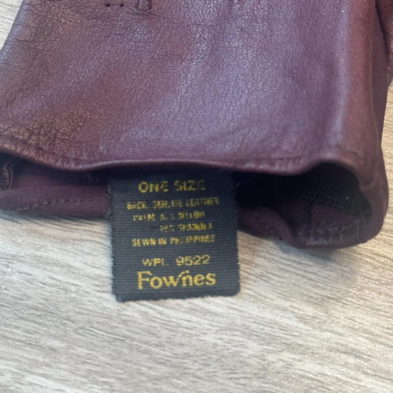 Burgundy leather gloves tag reads one size fits all but would be better for small/medium #leather #gloves