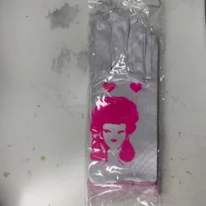 Pink and white satin gloves #glam hand screen printed #tea