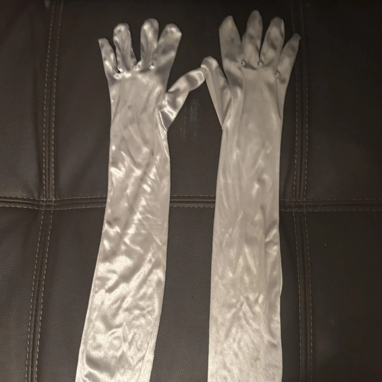 Silver satin long gloves #glamour #regency