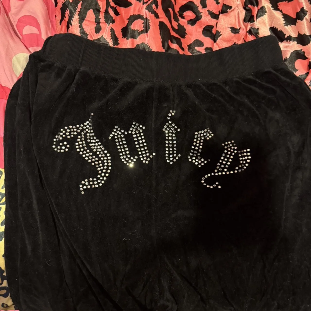 Forever 21 Juicy Couture black velour jogger sweatpants with rhinestone logo Size XXL #velour #loungewear #juicy #forever21