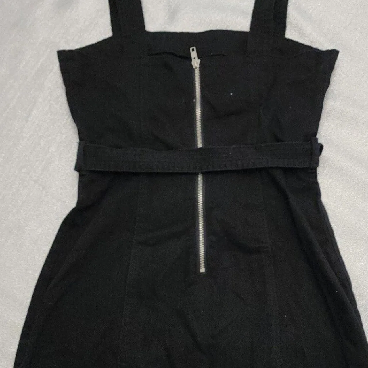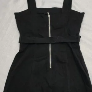 Black mini dress with buckle detail, ideal for a night out