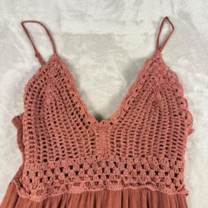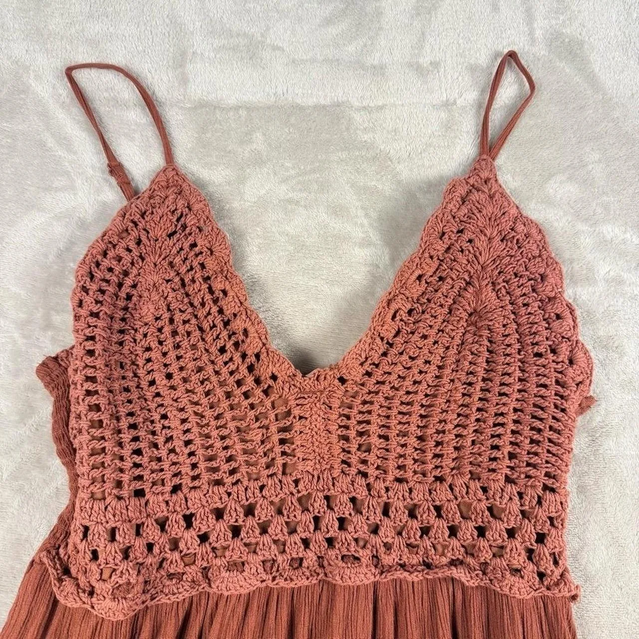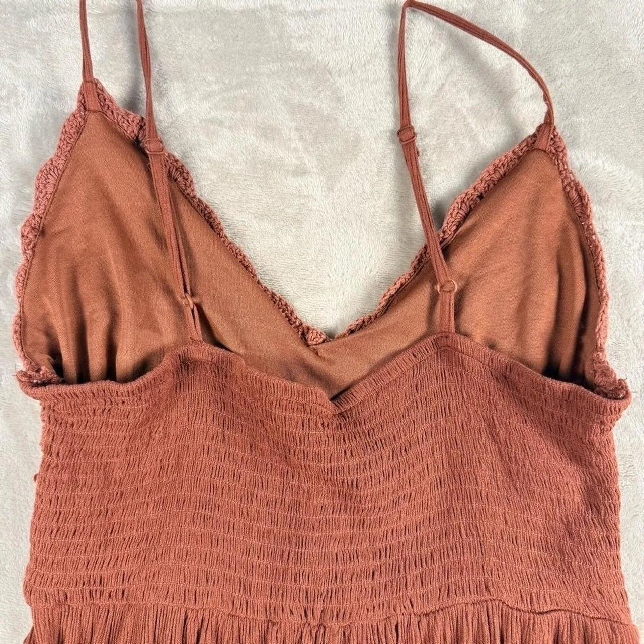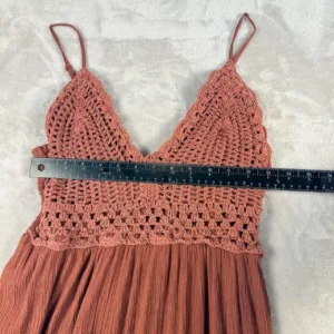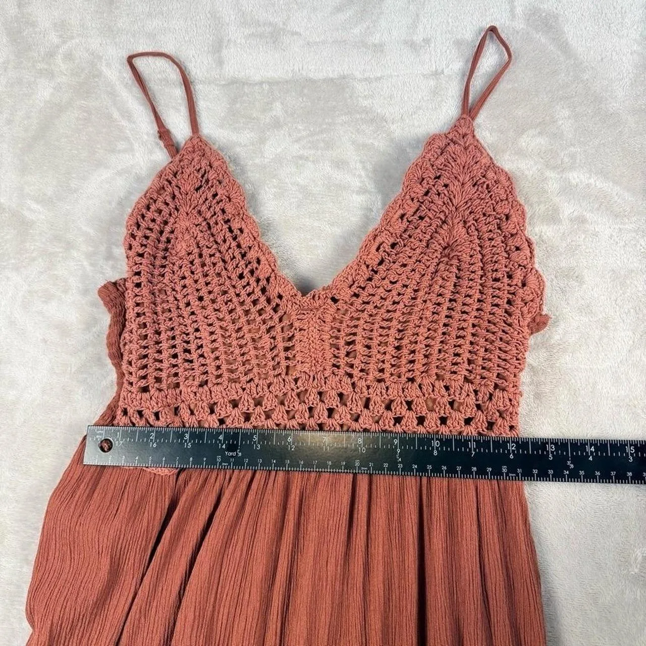 Indulge Crochet Bodice Boho Midi Dress Rust Size L Cottagecore