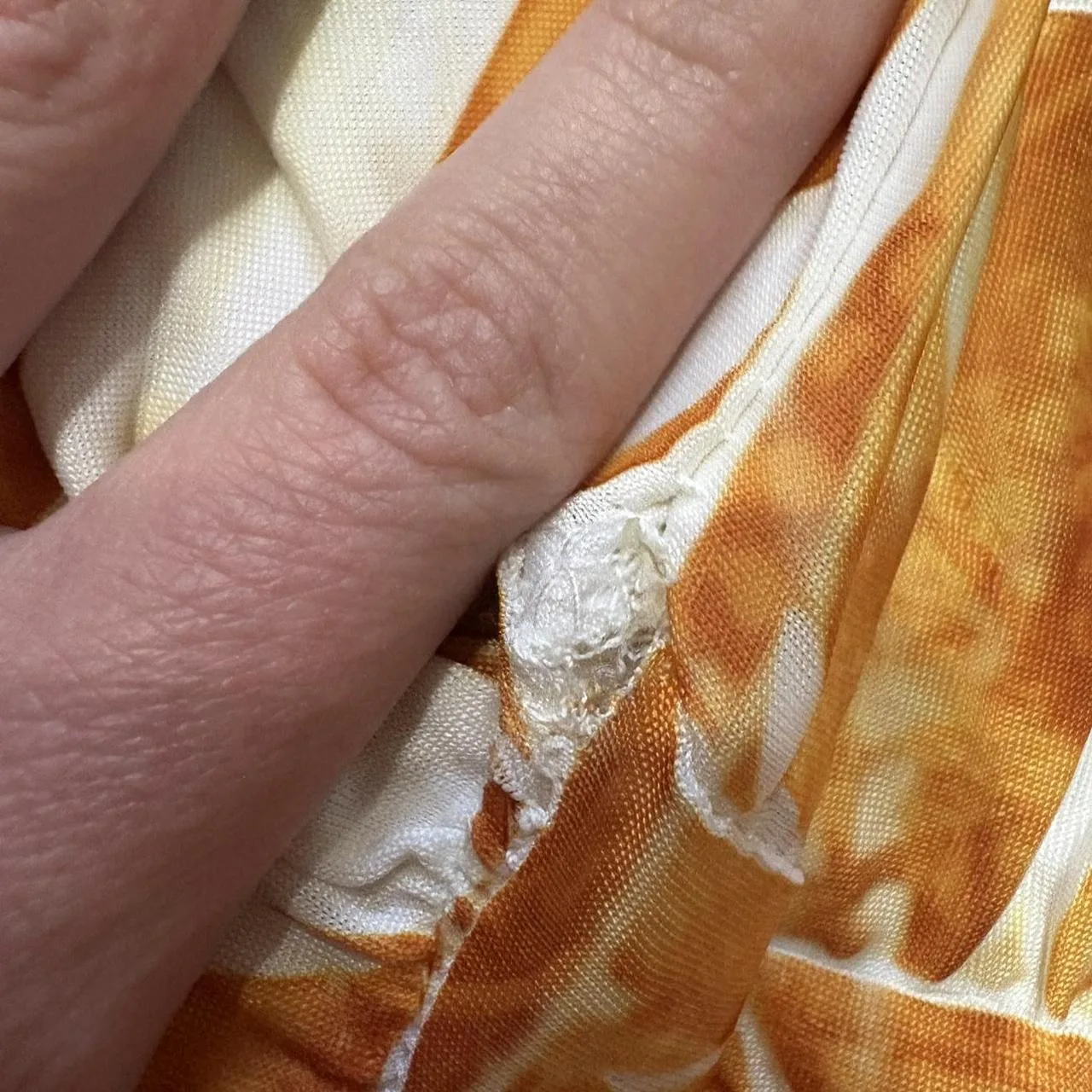 ?? Yellow, orange, and black halter dress?? only flaw is a barely noticeable small hole in the waist, pictured. Message me with any questions and send offers 🙂 please read shop policies before buying. I also have a purple version of this dress for sale in a size large!