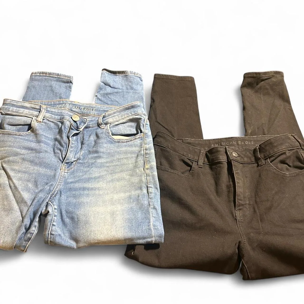 American Eagle black and blue skinny jeans bundle both size 14 short black jeans are dream stretch blue jeans are next level stretch #skinnyjeans #AE #bundle #womens
