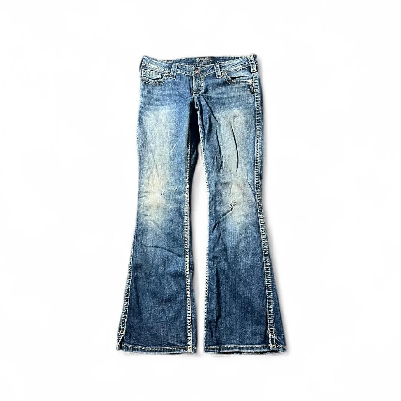 Silver Jeans Co. lowrise bootcut jeans with a super cool fade and white stitching Size 29″ #denim #flared #y2k #lowrise