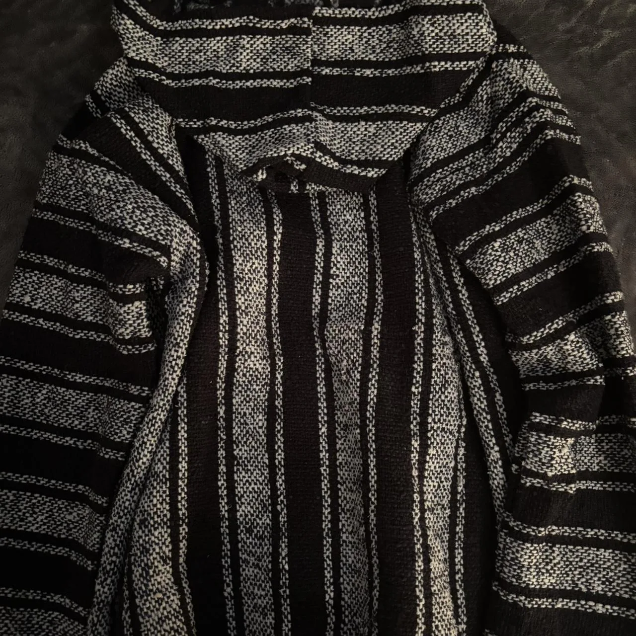 Medium-large Black & grey striped poncho never worn #poncho #striped