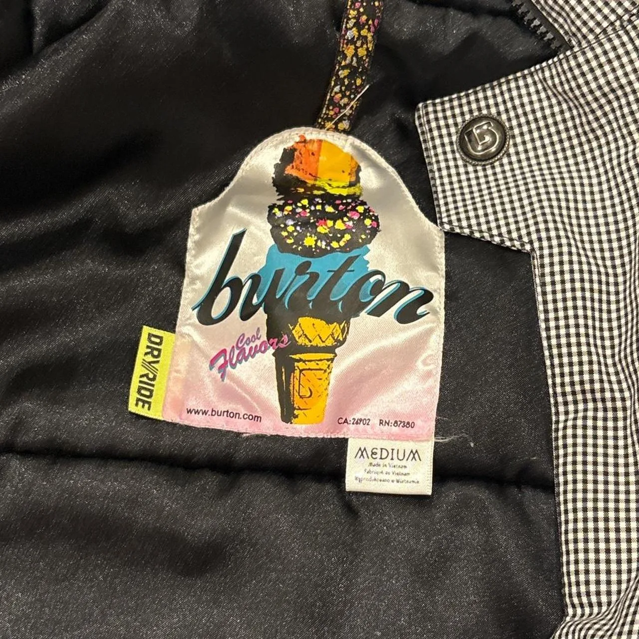 Vintage Burton women’s size medium white checker print ski jacket/ winter coat