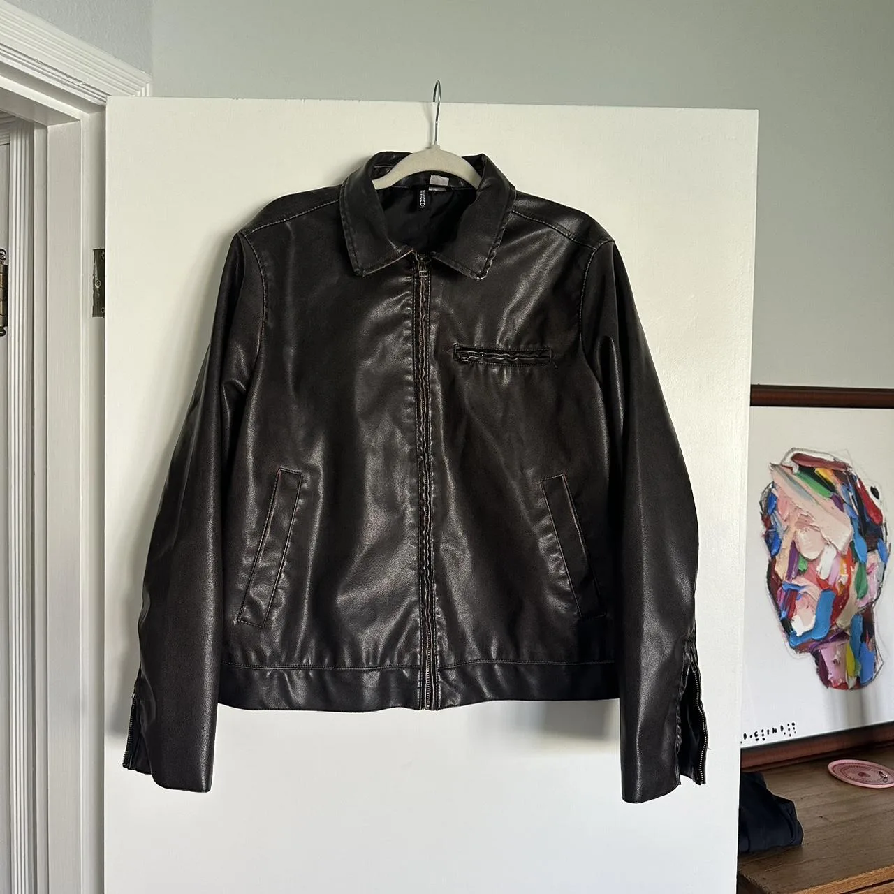 waxy leather, black jacket, moto style, structured, minimal, casual, edgy, textured leather, zipper details, slim fit