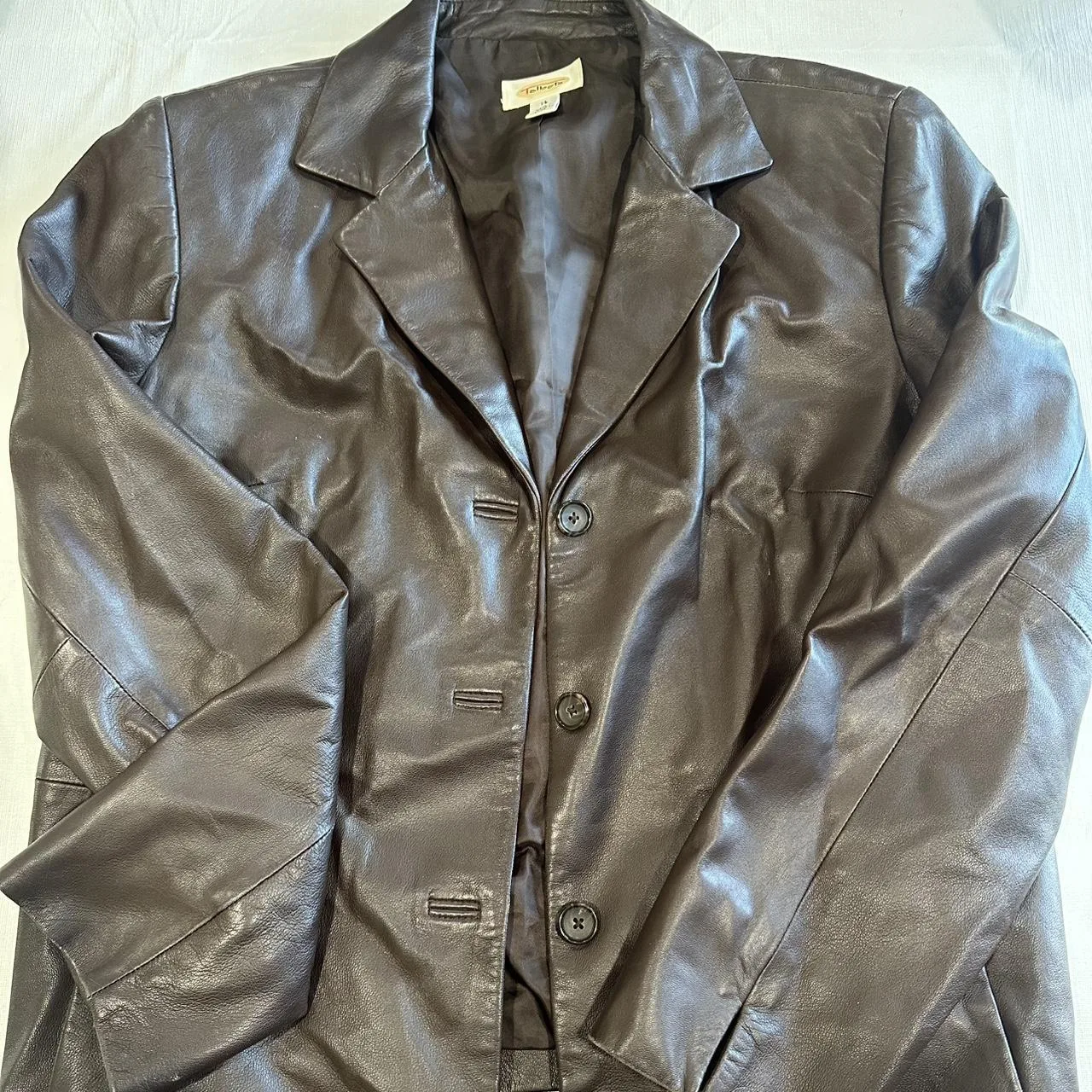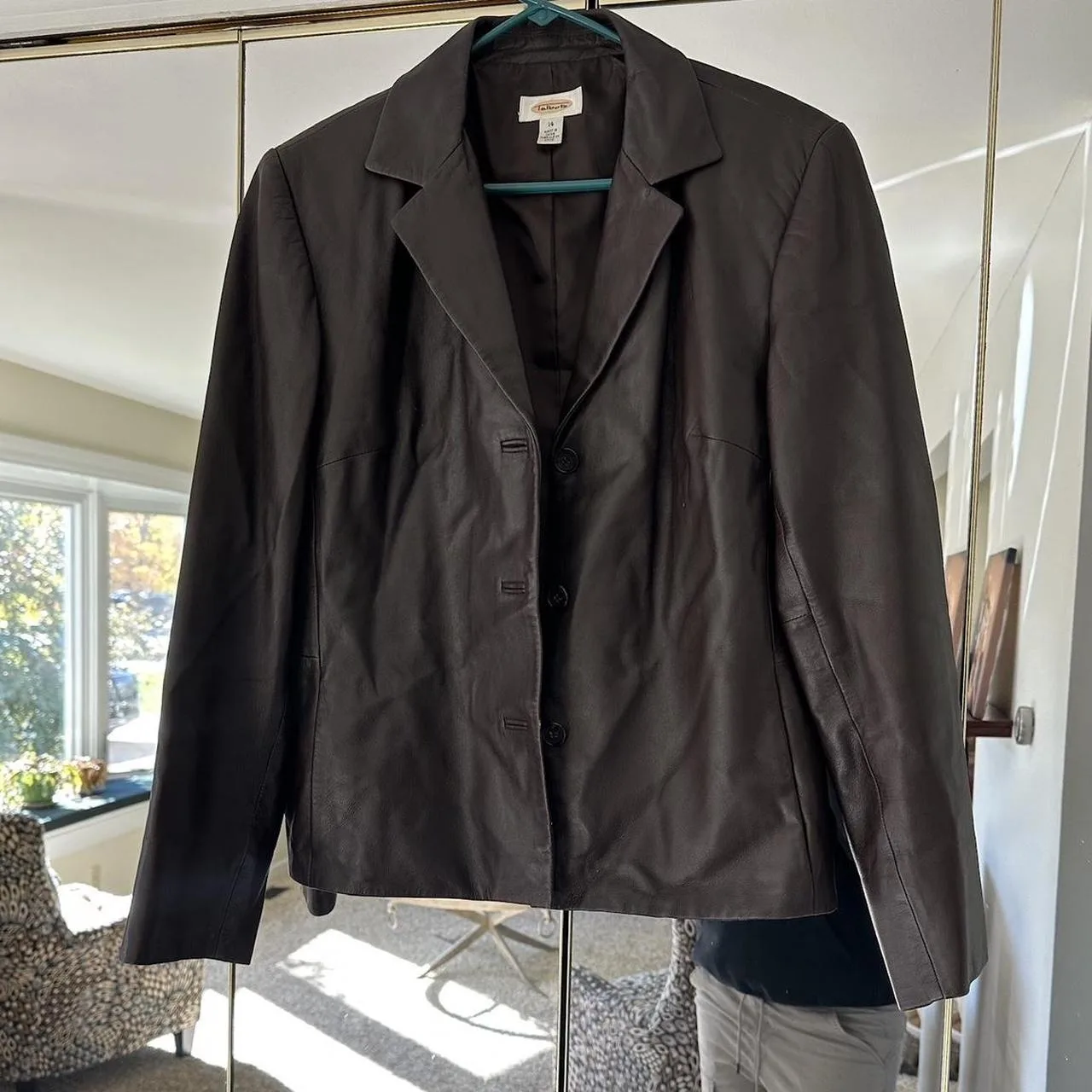 Brown leather blazer, genuine leather shell.