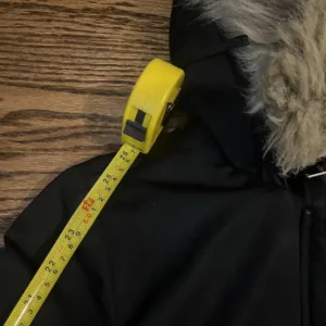 Black faux fur hooded parka coat with zipper pockets #fauxfur #parkacoat #y2k #winter #streetwear