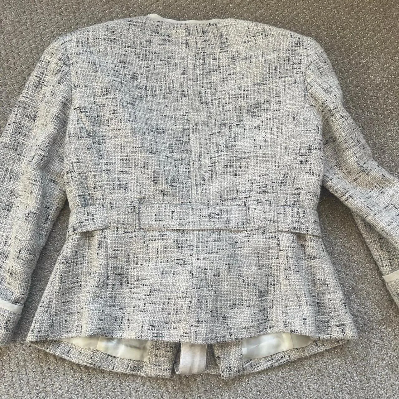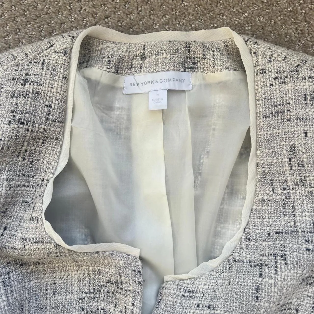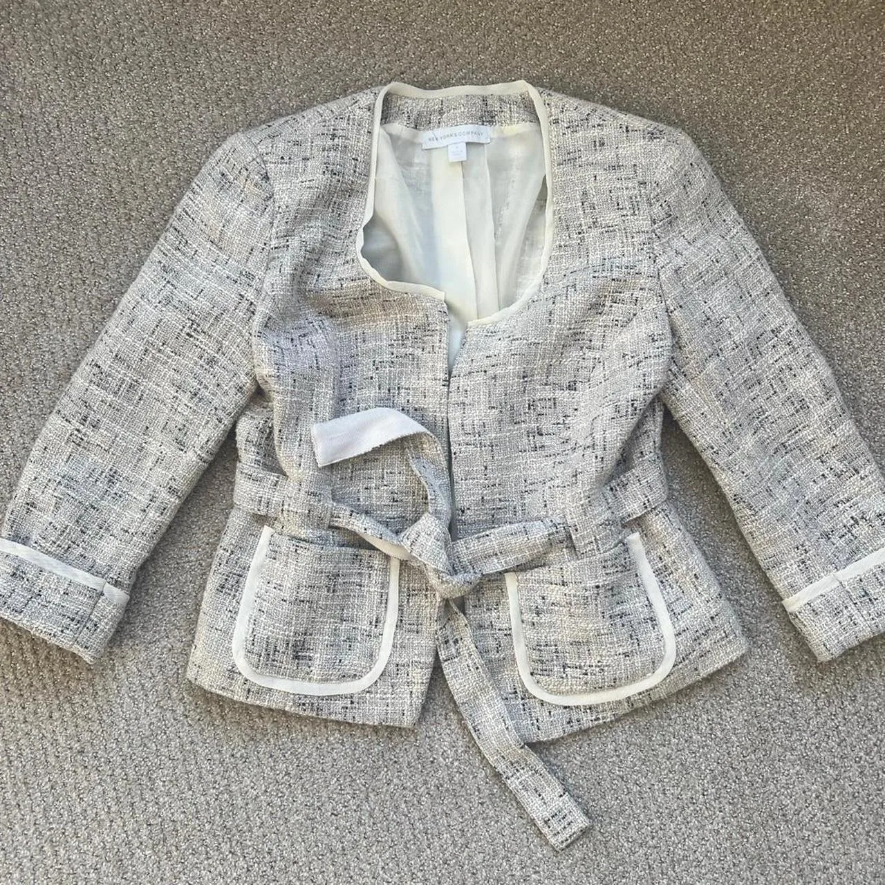 New York & Company Blazer – Size medium. Excellent used condition. From a smoke and pet free home. White and grey blazer with bow detail #blazer #formalwear