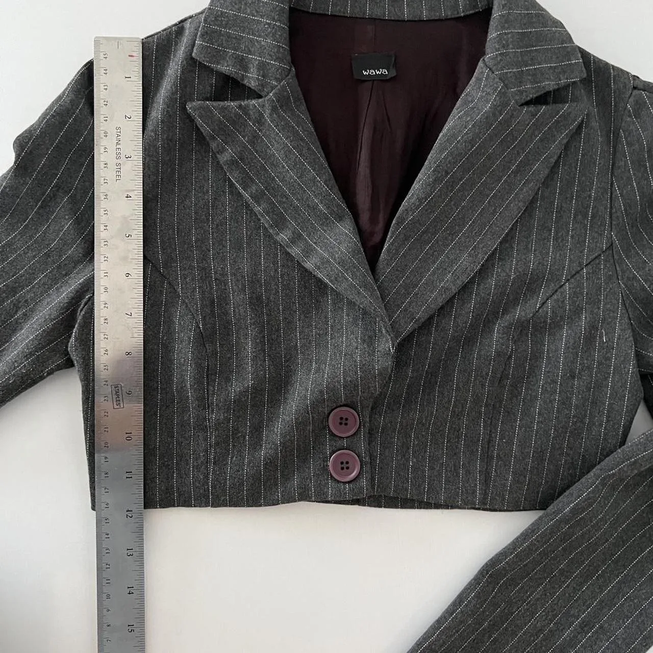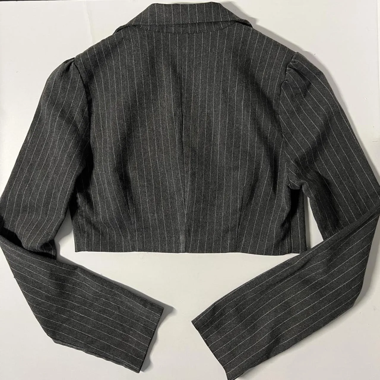 Grey pinstripe cropped blazer with bell sleeves #blazer #formal #y2k