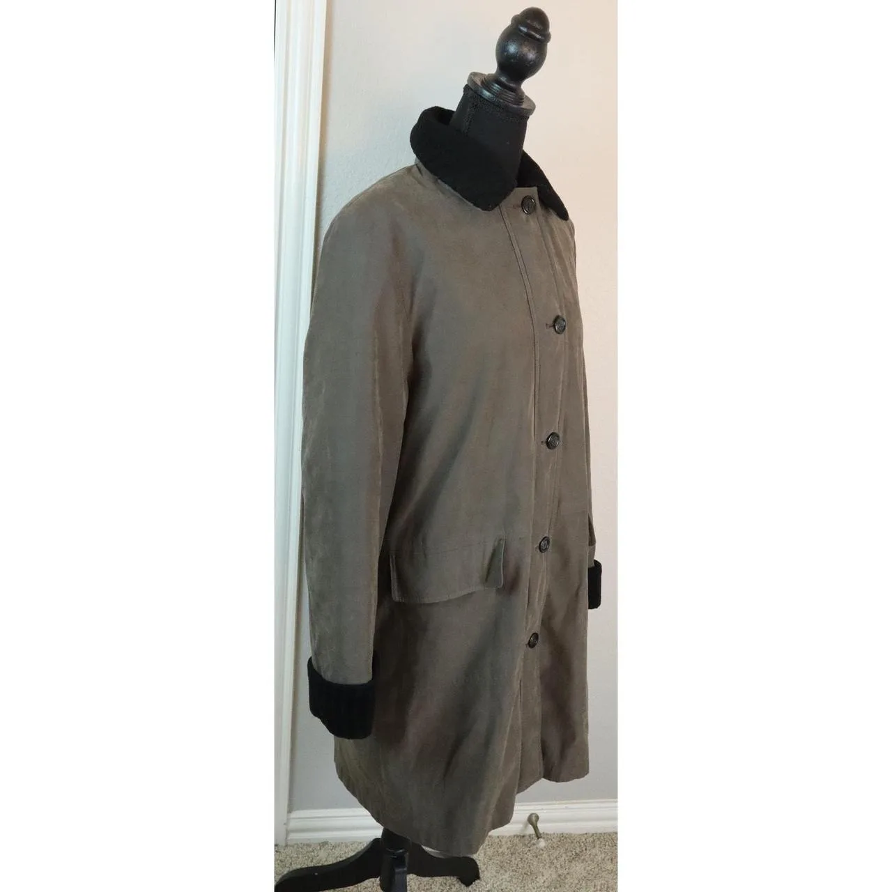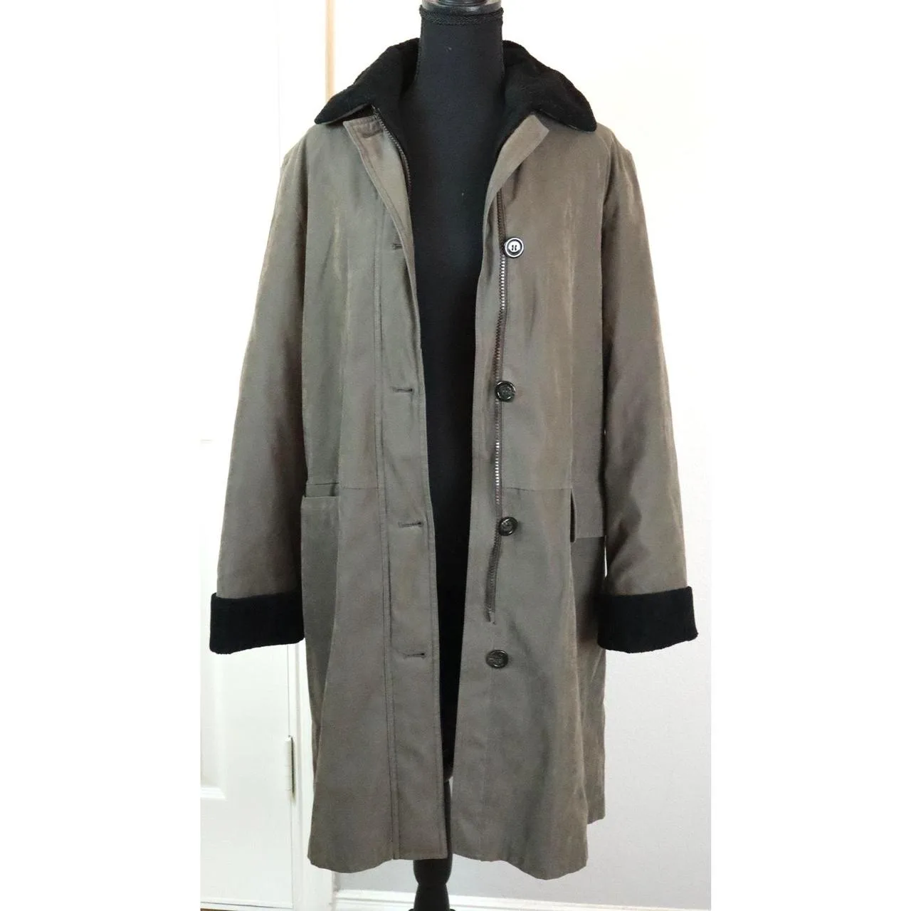 Excellent condition! Zip and button! SO WARM! Shearling, sherpa collar and REMOVABLE lining! Vintage 90s Gallery Gray Anorak Parka Coat Womens Small Microsuede Sherpa #waterproof #outdoor #mid length #long #trench coat