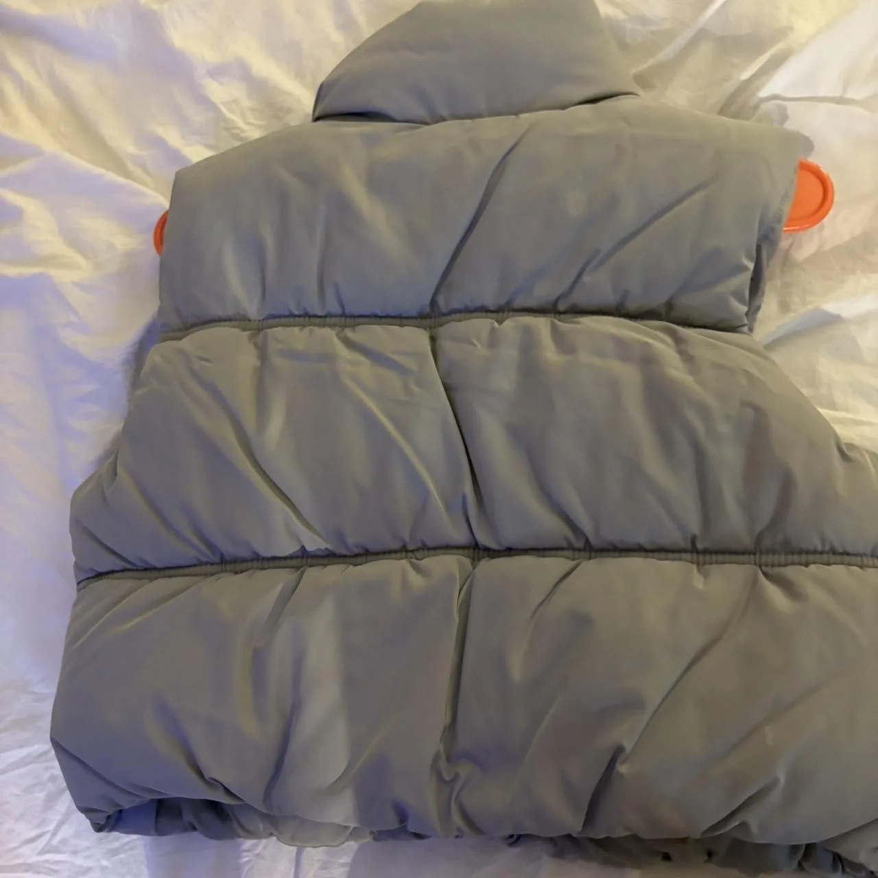 grey, cropped, puffer, vest, padded, quilted, sporty, winterwear, casual, lightweight