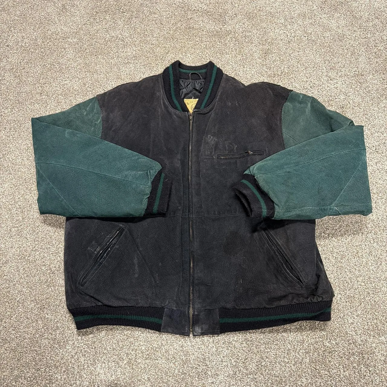 Black and green varsity jacket #varsityjacket #skater