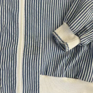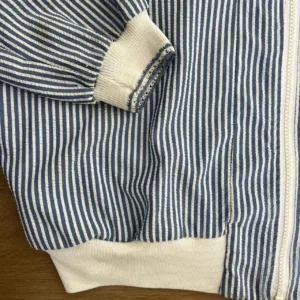 -discoloration to cuffs and bottom trim and stain on the front shown in last pic
